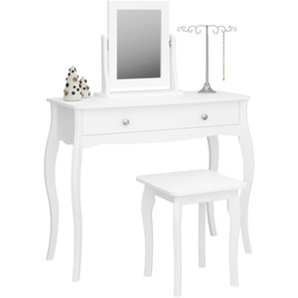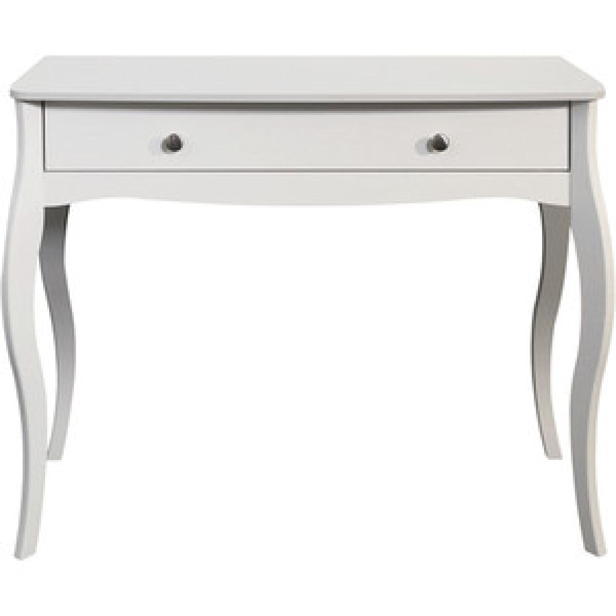 This Provence-inspired Baroque Dressing Table brings a touch of elegance to any bedroom. With delicate detailing, crisp finish and stainless steel handles, this piece works well with any style of room. The single drawer offers great storage space for makeup, jewellery or other such items, helping to keep them organised and within easy reach. The Dressing Table is best matched with the Baroque Dressing Table Stool and Mirror.
