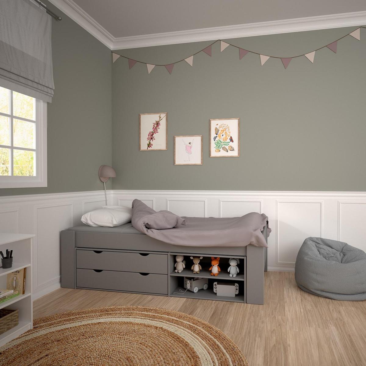 I really like this under-bed drawer for kids because it provides practical storage without cluttering the room. The grey finish is versatile and works well in both modern and neutral nursery settings, adding a sleek, clean touch. It’s ideal in minimalist interiors or in spaces where you want to maximise storage without sacrificing style. For styling tips, pair it with a simple bed frame and colourful bedding for a balanced look, or add some labelled storage bins for organisation. It’s a practical, low-cost way to keep toys, clothes, or bedding neatly tucked away while maintaining a tidy and functional space for little ones.