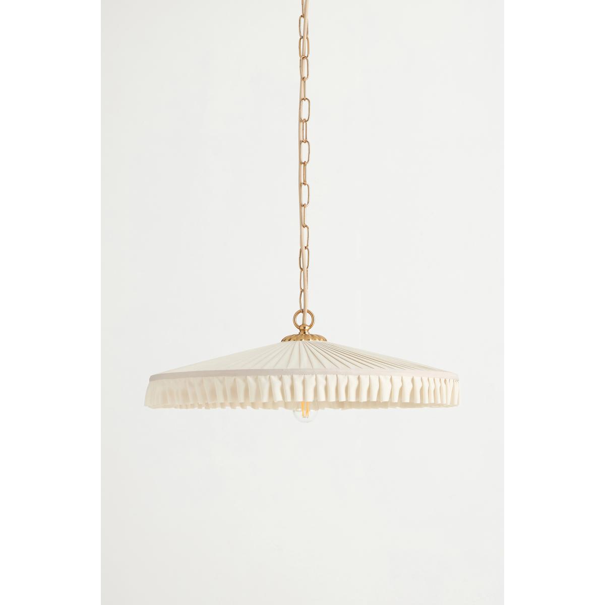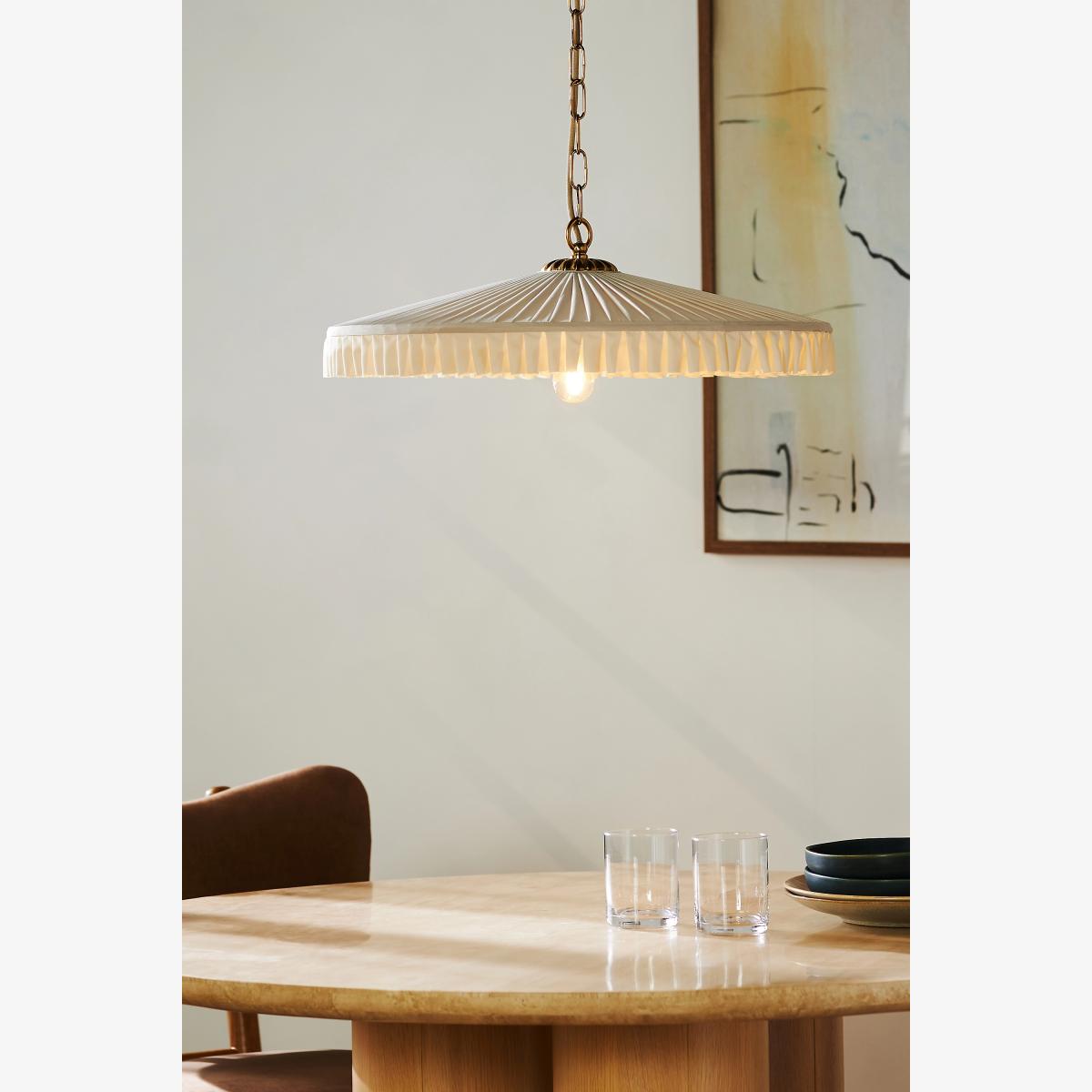 This pendant features a traditional pleated design with a slim, modern shade. This item is CE listed, meaning it has been tested and approved to meet the government-regulated safety standards for the UK. Use with electrical outlets of 230v or lower, as anything higher can cause fire or injury. If you're purchasing this item for use outside of the United Kingdom, employ the adapter and voltage converter suited for your country Stefanie Silk Ceiling Light by Anthropologie in Beige