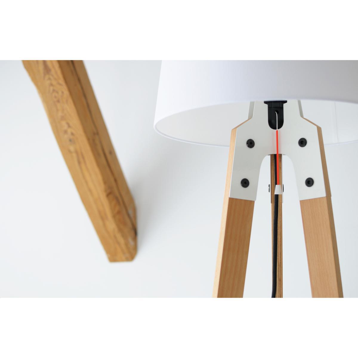 This floor lamp with strong visual presence has been designed by Nachtacht design studio. This Berlin trio, originally from the automotive sector, succeeded in imposing its vision of a design featuring pure lines and clean details in the spirit of the current do-it-yourself trend. “Stehleuchte” floor lamp combines, in a radical way, painted metal and wood, and lets the joints between the materials stay visible. A very original and surprisingly harmonious mix! This hybrid silhouette is modern and familiar at the same time. To switch it on, all you have to do is to pull the red cord – this is a funny detail which gives this lamp a specific character.