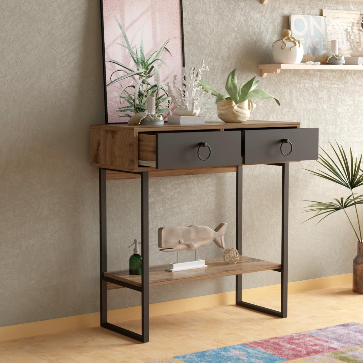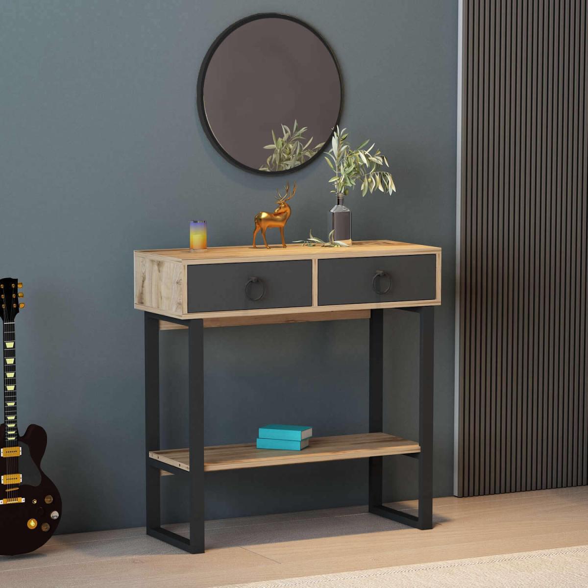 Stein Metal Manufacture Wood Dresuar Console Table with Drawers and Shelf - Dark Oak & Anthracite
