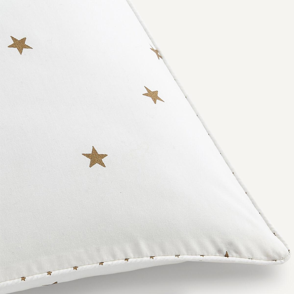 Twinkle twinkle little star, how beautiful and soft you are! Made from pure, premium organic cotton percale, this adorable infant-sized pillowcase will keep your baby cosy and comfortable. Its starry print is so pretty you’ll want to borrow it for yourself! Ultra soft, supple and silky, cotton percale is a weaving method and not a material. It is made of long and very fine cotton threads. Superior quality, percale offers softness and lightness. Product Details • 100% cotton • Organic cotton • Cotton percale • 400 Thread Count: a common indicator for measuring the quality of fabric is the number of threads per cm². Different sensations are made possible thanks to the weaving and the number of threads present. Indeed, an optimal number of threads makes the bed linen particularly soft. Care Advice Follow our care tips to maintain the quality of your laundry • Machine washable at 60°C • By washing your laundry at 40°C instead of 60°C, you limit energy consumption • Tumble dry at low temperature • Iron at average temperature • Do not dry clean. Dimensions • 40 x 60cm: Cot size • Cotton from organic farming. Organic farming does not use any chemicals, pesticides, insecticides or GMOs. Produced with minimal impact on biodiversity. • OEKO-TEX® Standard 100. Standard 100 certification by OEKO-TEX® tests textile products for harmful substances via an independent, international label.