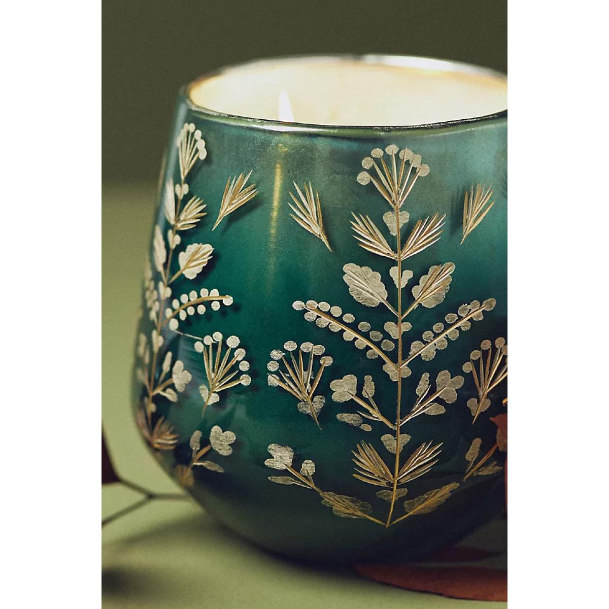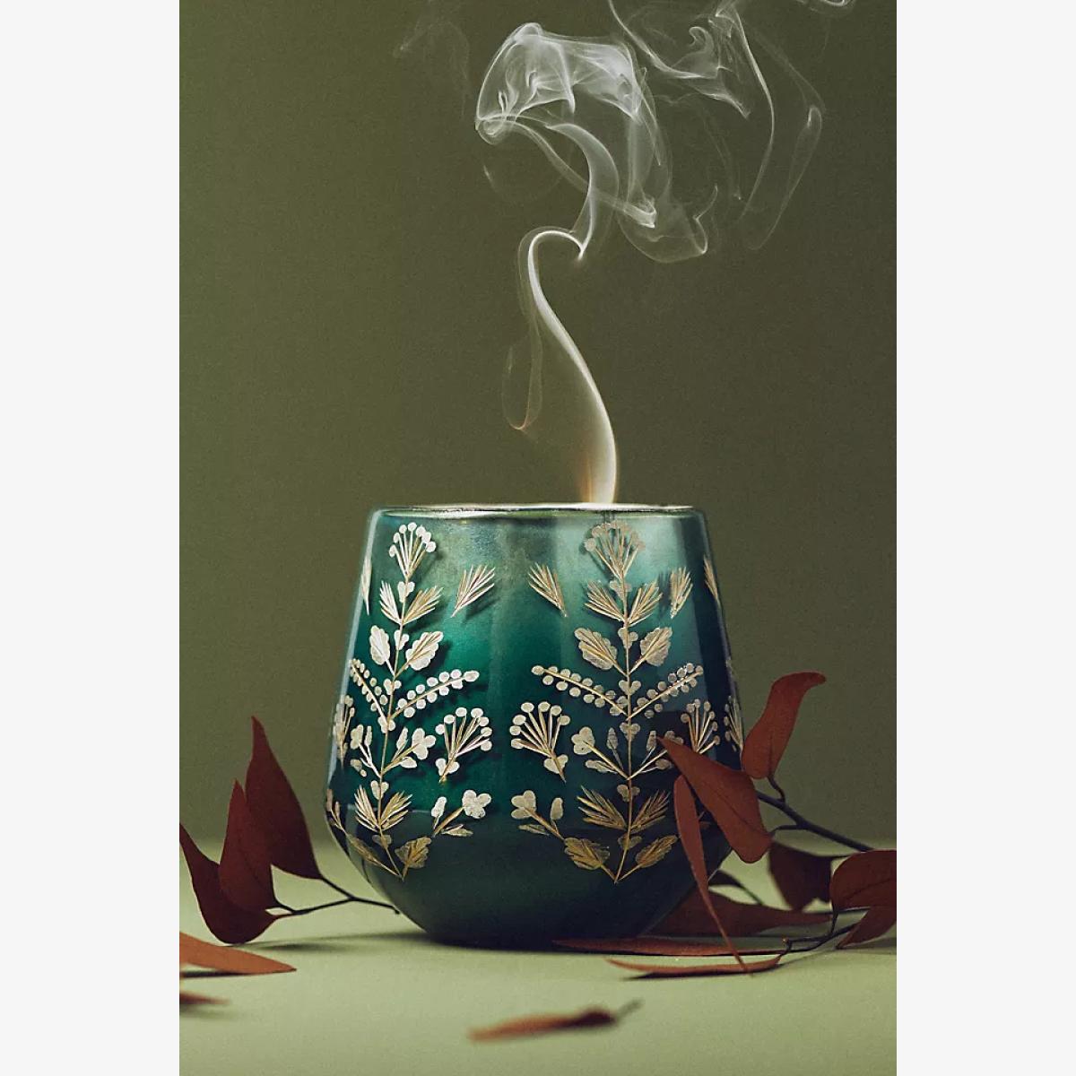 **Leather & Leaves (Woody Fresh):** Fallen autumn leaves gather with dark oud, fragrant fir needle and cracked peppercorn amid notes of worn leather and woodland musk. *For the best burn experience, keep the following in mind:* * The first time you light your candle, allow it to burn until the wax pool melts all the way to the edge; for a larger candle, this may take several hours. Wax has "memory," so if it is extinguished with a partial pool, that will prevent a full, even pool from forming in the future. * Trim your wick each time you light the candle, removing any "bloom" from the previous burn. We recommend lighting a wick that is 1/4-1/2" in length. * Ensure that your candle is placed on a heat-safe surface. * Do not allow wick trimmings, dust, or other materials to accumulate in the wax pool. * To ensure safety and longevity, be sure to check the bottom of your candle for additional instructions, including details on when to discontinue use. * Exclusively at Anthropologie * 72-hour burn time * Plant-based wax blend; fil-tec candle wick * Glass vessel * Imported