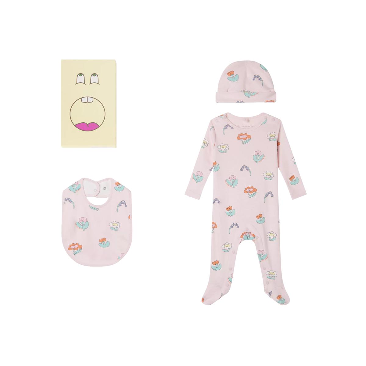 Stella McCartney Kids Baby Cotton Jersey Flower Sleepsuit, Hat & Bib Set, Pink
