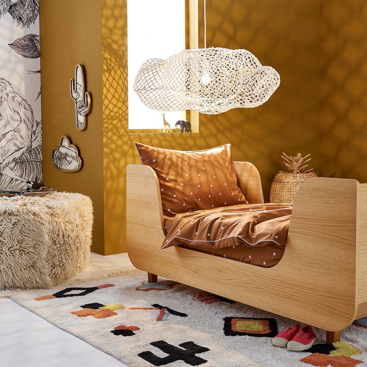 I love this bed sheet for adding a touch of understated charm to a child's bedroom - its organic cotton percale means it’s super breathable and practical for everyday use. The neutral white with subtle star print makes it versatile, working well in both modern and more traditional interiors. For styling, pair it with soft, pastel bedding or vibrant colours to create a calming or playful environment, depending on your aesthetic. It’s great for layering with cosy blankets or quilts, and because of its natural fabric, it’s ideal for both daytime naps and night-time comfort. Simple, timeless, and easy to integrate into a variety of nursery or child’s room themes.