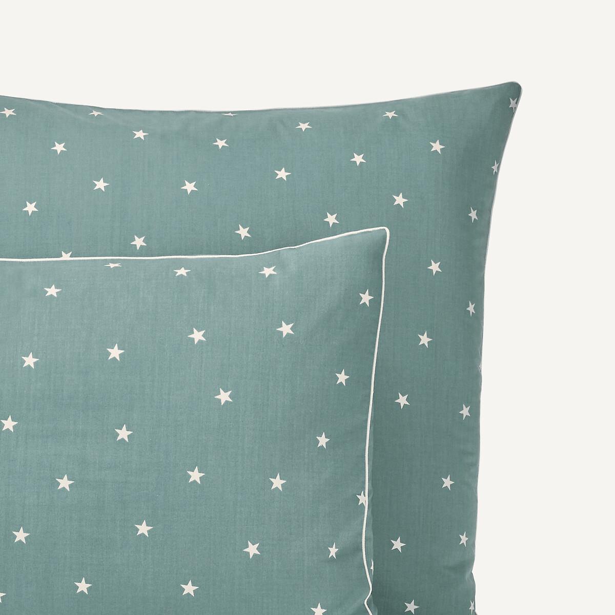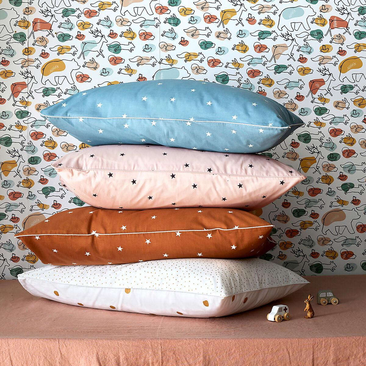 Make a wish as you drift off to sleep on this super soft, star-sprinkled organic cotton pillowcase from our Stella range. Its starry print is so pretty you’ll want to borrow it for yourself!Ultra soft, supple and silky, cotton percale is a weaving method and not a material. It is made of long and very fine cotton threads. Of superior quality, the percale offers softness, freshness and a durable material. Product Details • 100% cotton • Organic cotton • Cotton percale • 400 Thread Count: a common indicator for measuring the quality of fabric is the number of threads per cm². Different sensations are made possible thanks to the weaving and the number of threads present. Indeed, an optimal number of threads makes the bed linen particularly soft. Care Advice Follow our care tips to maintain the quality of your laundry • Machine washable at 60°C • By washing your laundry at 40°C instead of 60°C, you limit energy consumption • Tumble dry at low temperature • Iron at average temperature • Do not dry clean. Dimensions • 50 x 70cm: Rectangular pillowcase • 63 x 63cm: Square pillowcase • Cotton from organic farming. Organic farming does not use any chemicals, pesticides, insecticides or GMOs. Produced with minimal impact on biodiversity. • OEKO-TEX® Standard 100. Standard 100 certification by OEKO-TEX® tests textile products for harmful substances via an independent, international label.