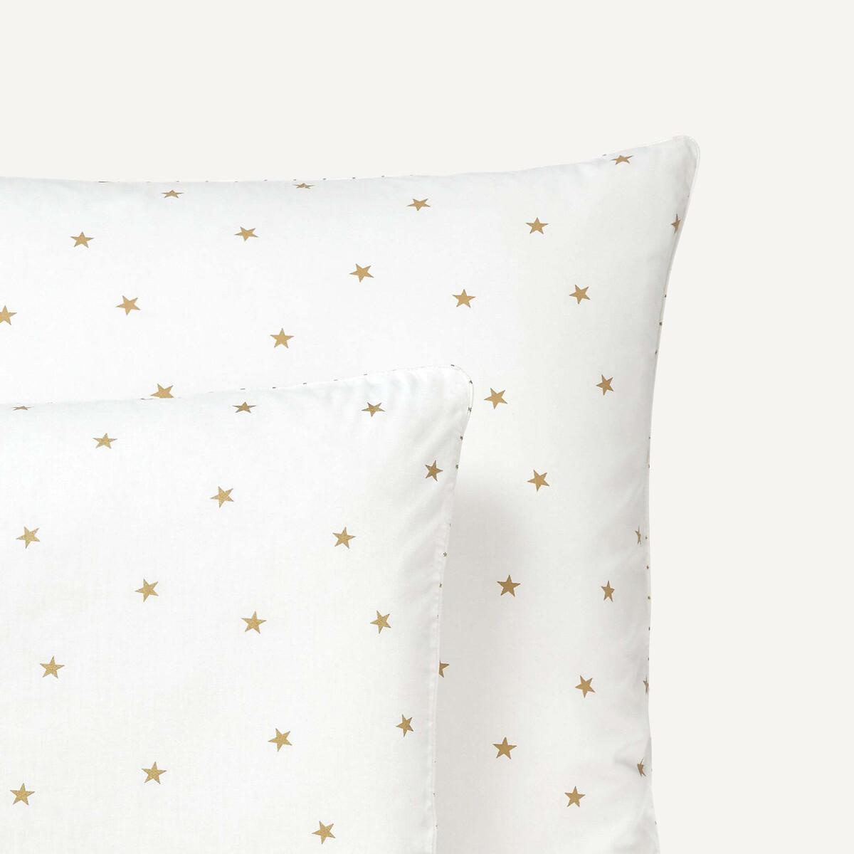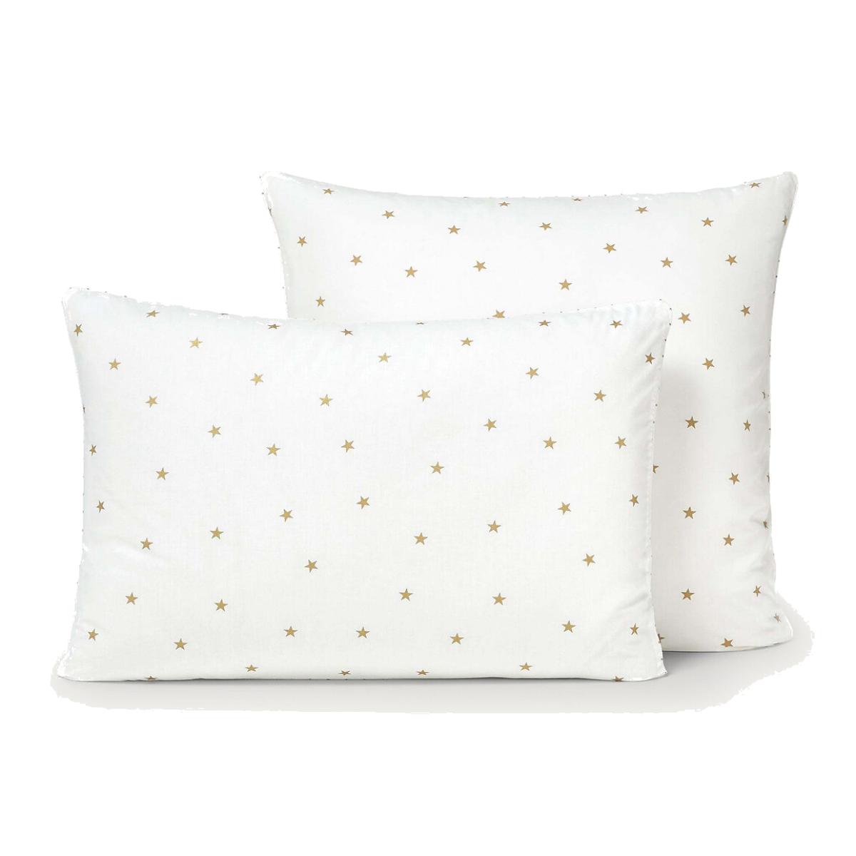 Make a wish as you drift off to sleep on this super soft, star-sprinkled organic cotton pillowcase from our Stella range. Its starry print is so pretty you’ll want to borrow it for yourself!Ultra soft, supple and silky, cotton percale is a weaving method and not a material. It is made of long and very fine cotton threads. Of superior quality, the percale offers softness, freshness and a durable material. Product Details • 100% cotton • Organic cotton • Cotton percale • 400 Thread Count: a common indicator for measuring the quality of fabric is the number of threads per cm². Different sensations are made possible thanks to the weaving and the number of threads present. Indeed, an optimal number of threads makes the bed linen particularly soft. Care Advice Follow our care tips to maintain the quality of your laundry • Machine washable at 60°C • By washing your laundry at 40°C instead of 60°C, you limit energy consumption • Tumble dry at low temperature • Iron at average temperature • Do not dry clean. Dimensions • 50 x 70cm: Rectangular pillowcase • 63 x 63cm: Square pillowcase • Cotton from organic farming. Organic farming does not use any chemicals, pesticides, insecticides or GMOs. Produced with minimal impact on biodiversity. • OEKO-TEX® Standard 100. Standard 100 certification by OEKO-TEX® tests textile products for harmful substances via an independent, international label.