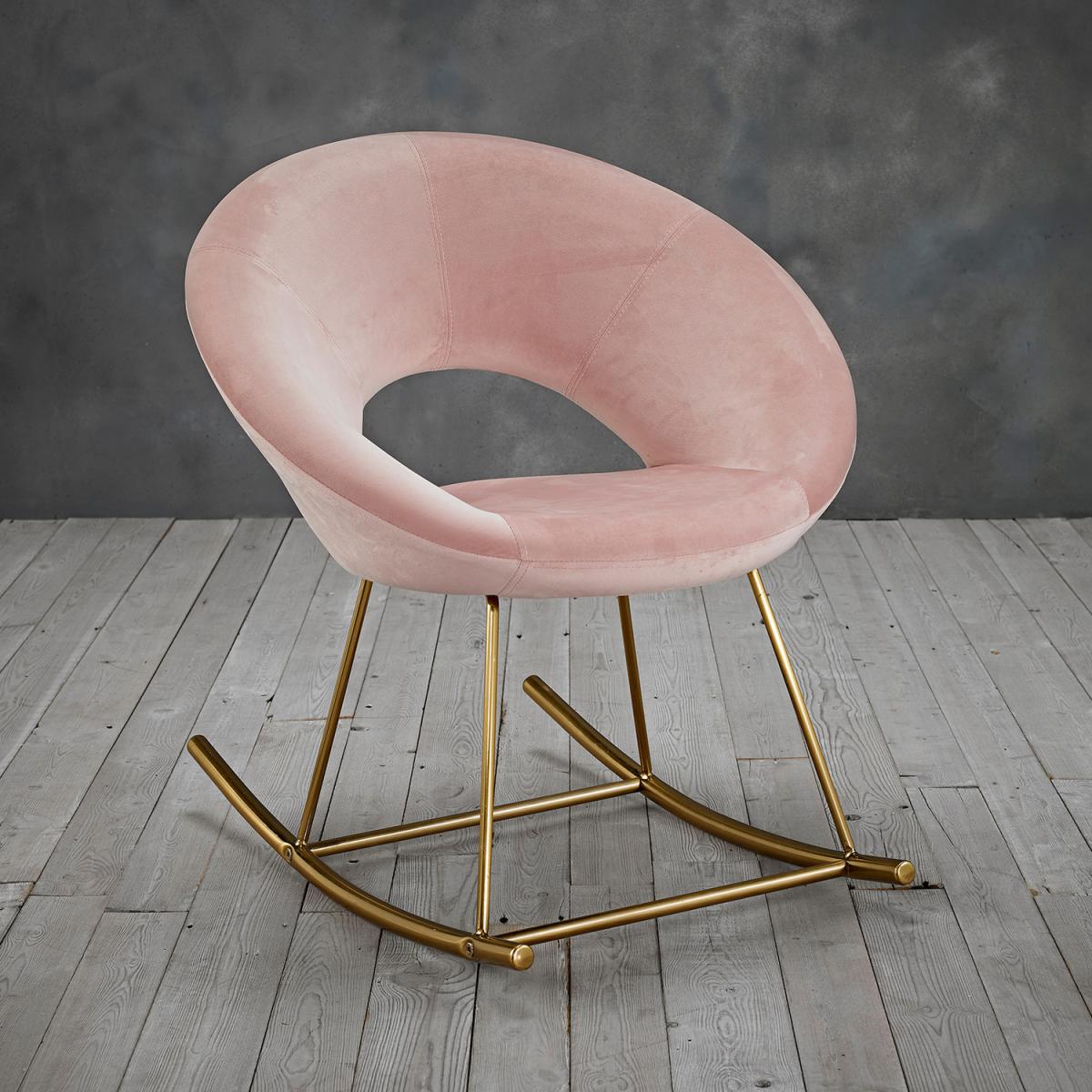 This stunning Stella Rocking Chair would be the most perfect and practical new addition to your home, bringing a pop of colour and a modern style to your interior whilst also providing extra seating. This rounded, cut out chair has been upholstered in a blush pink suede fabric and features a metal base with a golden finish.