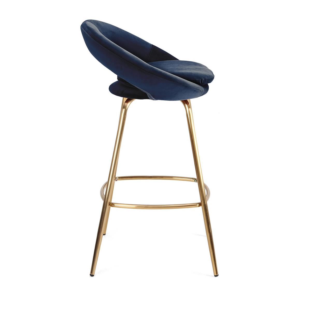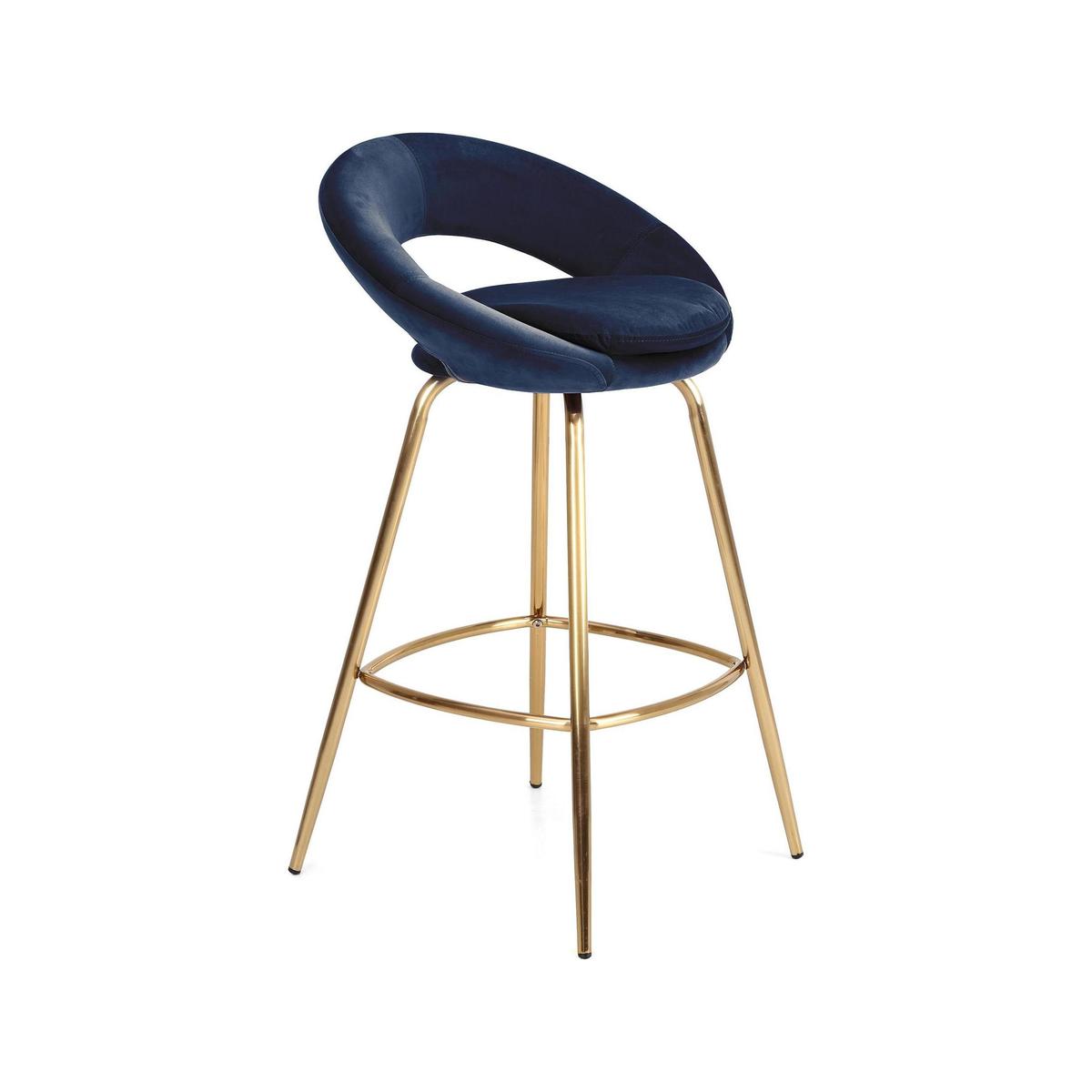 Stylishly designed to add an elegance touch to any dining space, the Stella bar stool range is crafted with a scooped back and cut-out detailing with complementing gold metal legs and a crossbar footrest. Upholstered in a gorgeous, soft touch velvet fabric, this bar stool features a midnight blue colourway and combines a vintage inspired design with a modern twist.\n\nSeat Height: 71cm\n\nSeat Depth: 35cm\n\nPlease Note: This product and any of its fabrics have been manufactured for domestic use only.\n\nOther colours are also available. [Click here to view the full Stella collection](https://www.dunelm.com/search?f_attributes.productDescriptiveAttributes.Type=Stools&f_attributes.productDescriptiveAttributes.Type=Dining+Chairs&q=stella)