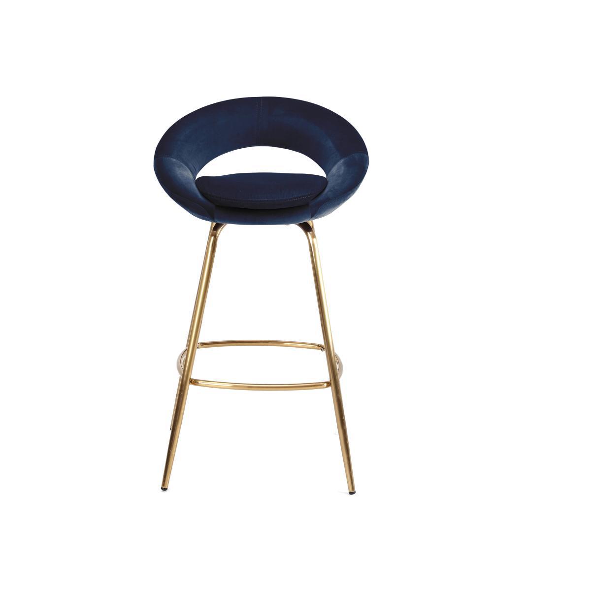 Stylishly designed to add an elegance touch to any dining space, the Stella bar stool range is crafted with a scooped back and cut-out detailing with complementing gold metal legs and a crossbar footrest. Upholstered in a gorgeous, soft touch velvet fabric, this bar stool features a choice of stunning colours and combines a vintage inspired design with a modern twist. Seat Height: 71cm. Seat Depth: 35cm. Please Note: This product and any of its fabrics have been manufactured for domestic use only. Other colours are also available.