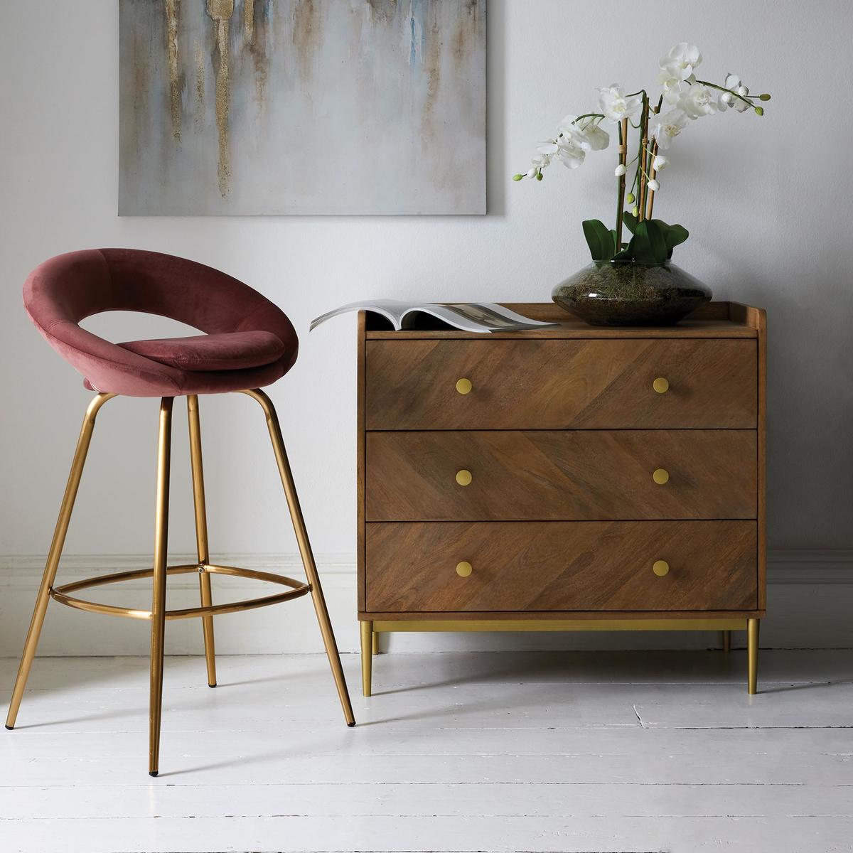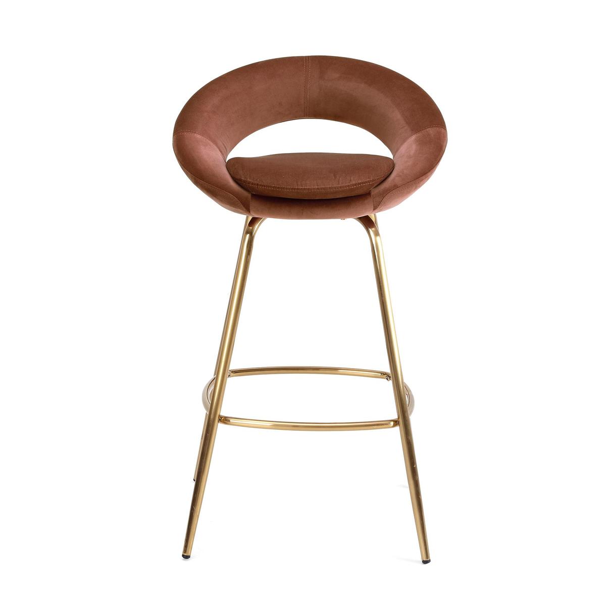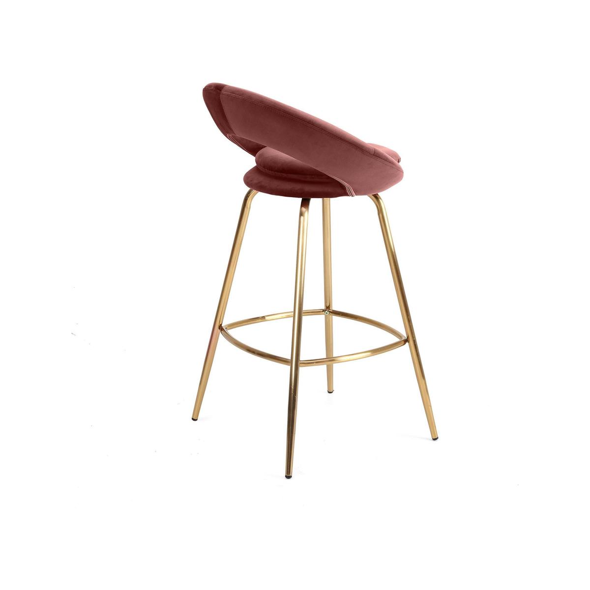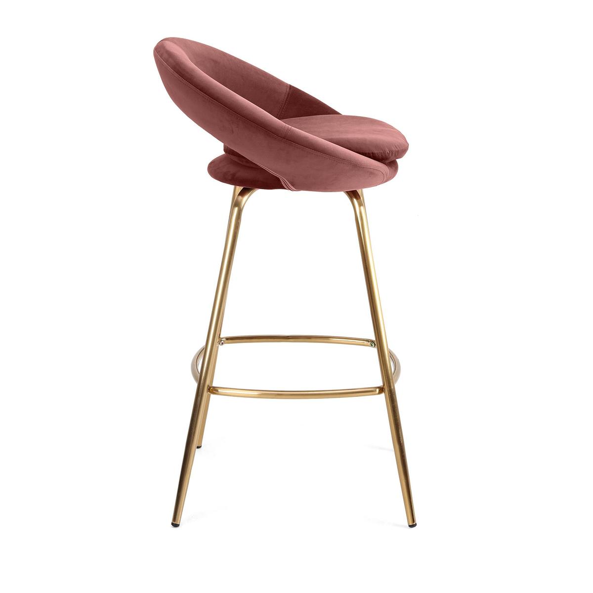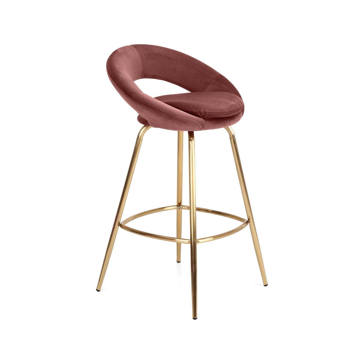 Stylishly designed to add an elegance touch to any dining space, the Stella bar stool range is crafted with a scooped back and cut-out detailing with complementing gold metal legs and a crossbar footrest. Upholstered in a gorgeous, soft touch velvet fabric, this bar stool features a blush pink colourway and combines a vintage inspired design with a modern twist.\n\nSeat Height: 71cm\n\nSeat Depth: 35cm\n\nPlease Note: This product and any of its fabrics have been manufactured for domestic use only.\n\nOther colours are also available. [Click here to view the full Stella collection](https://www.dunelm.com/search?f_attributes.productDescriptiveAttributes.Type=Stools&f_attributes.productDescriptiveAttributes.Type=Dining+Chairs&q=stella)