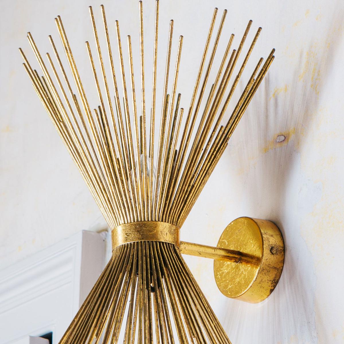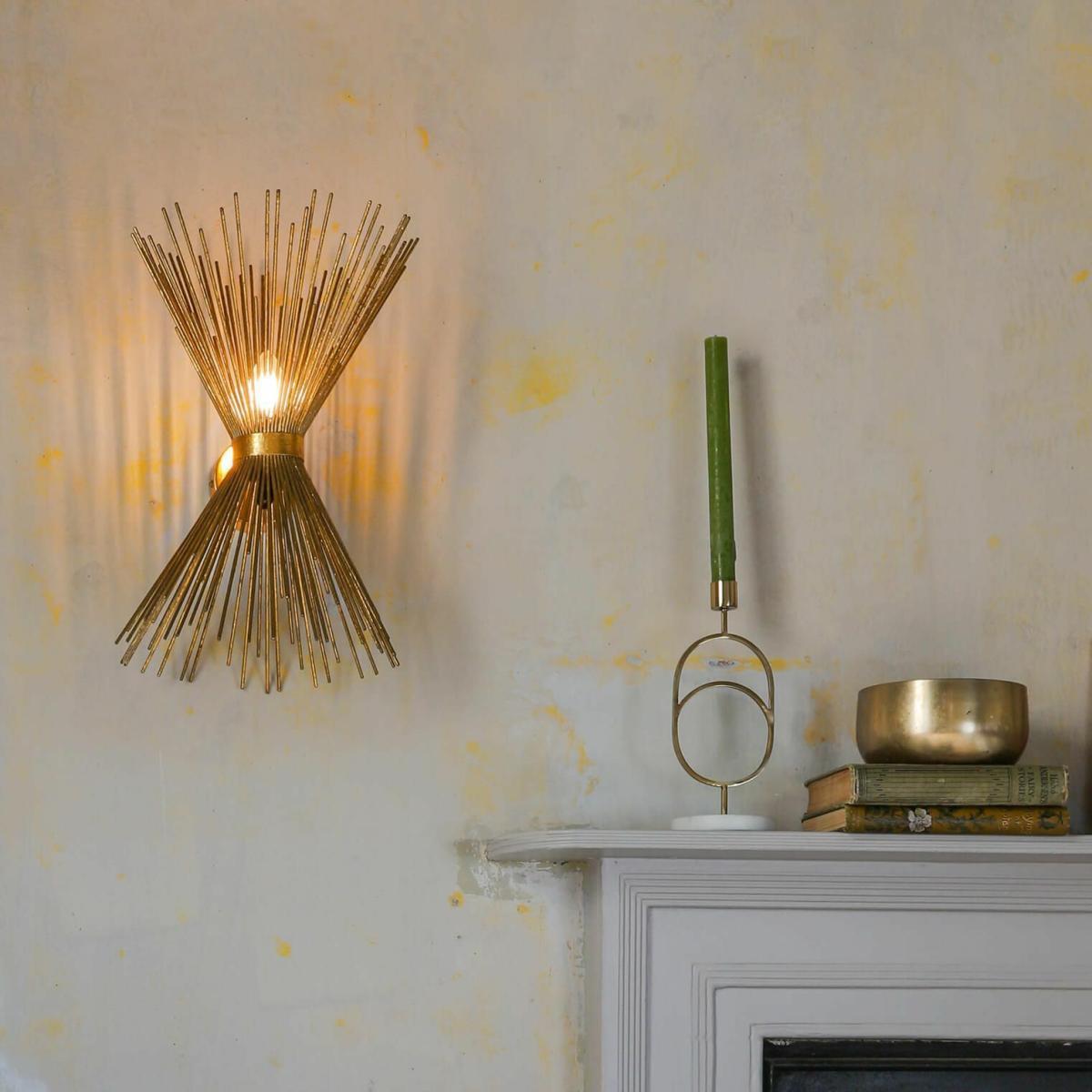 Use your interior details to make a bold statement, starting with our Stella wall light. Crafted from iron, each one features a number of thin rods in varying lengths, shaped to resemble rays of light. Featuring a gold foil finish, the Stella wall light would be an eye-catching addition to any hallway, bedroom, or sitting room.