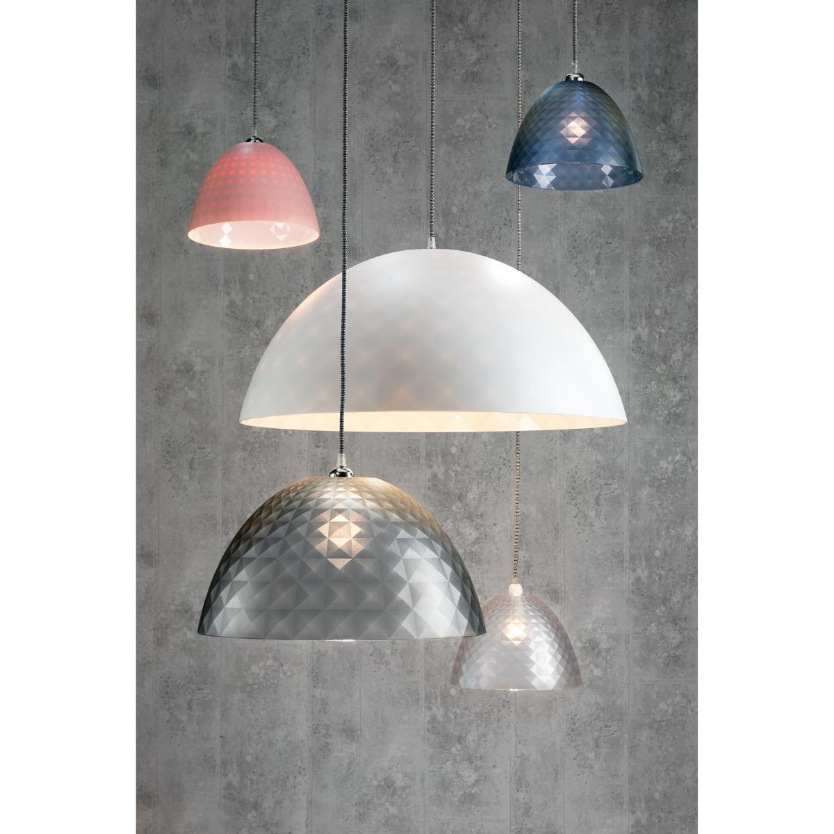 Absolute chic for this most precious lampshade. This bright, diamond-like jewel reflects the light, creating a flickering effect. Fragmented light shoots from all sides, creating beautiful projected shadows! Its sides look like they have been folded: a captivating sculptural shape. Entirely made of plastic, Stella is a remarkable work in the material and an elaboration of shapes with surprising expressive force. Like a twinkling star, this light and airy lampshade will brighten up your interior with its original presence. Very chic! It comes in several sizes and a range of bright colours. Lampshade sold separately. Cable and socket set sold separately, available on our website. Available in several colours.