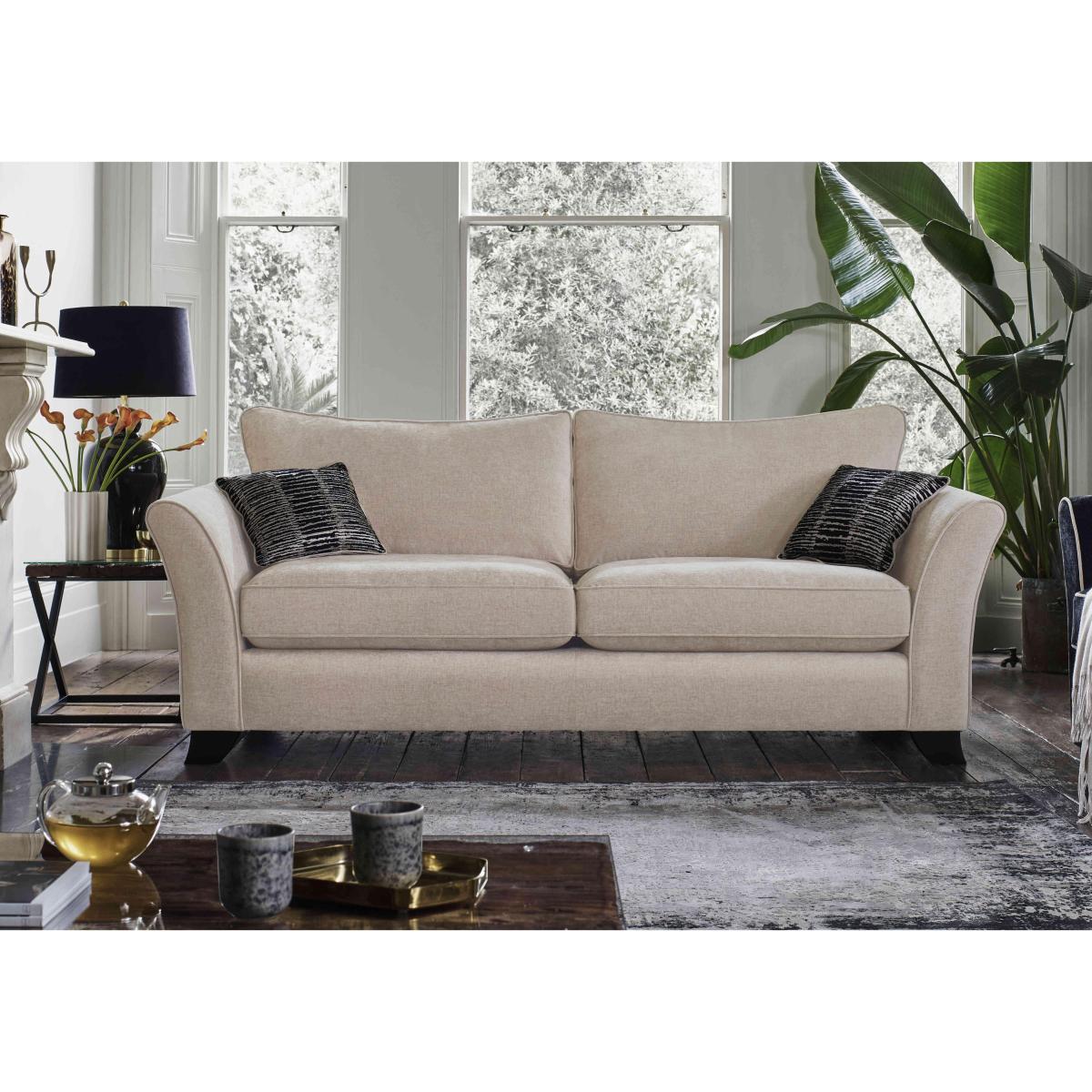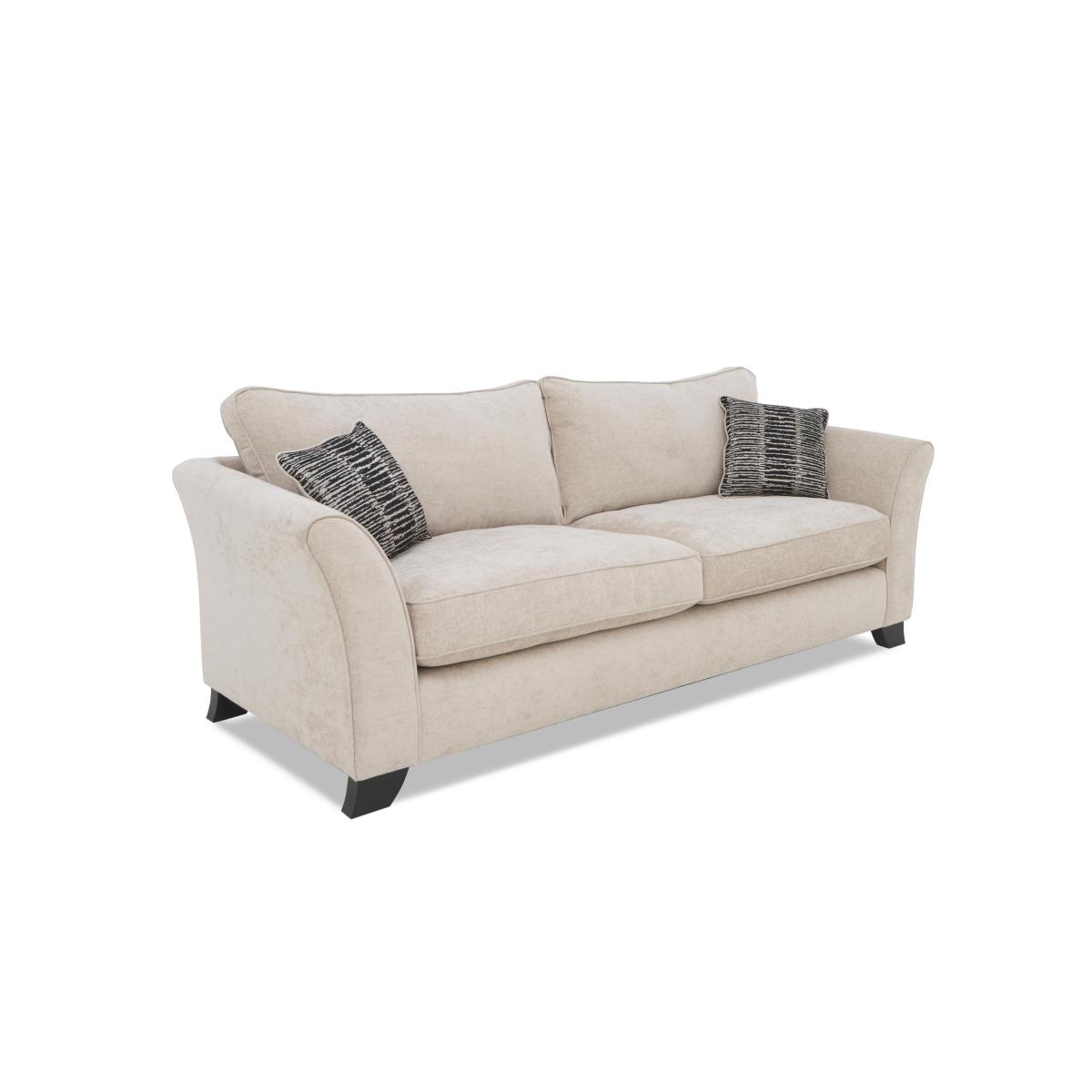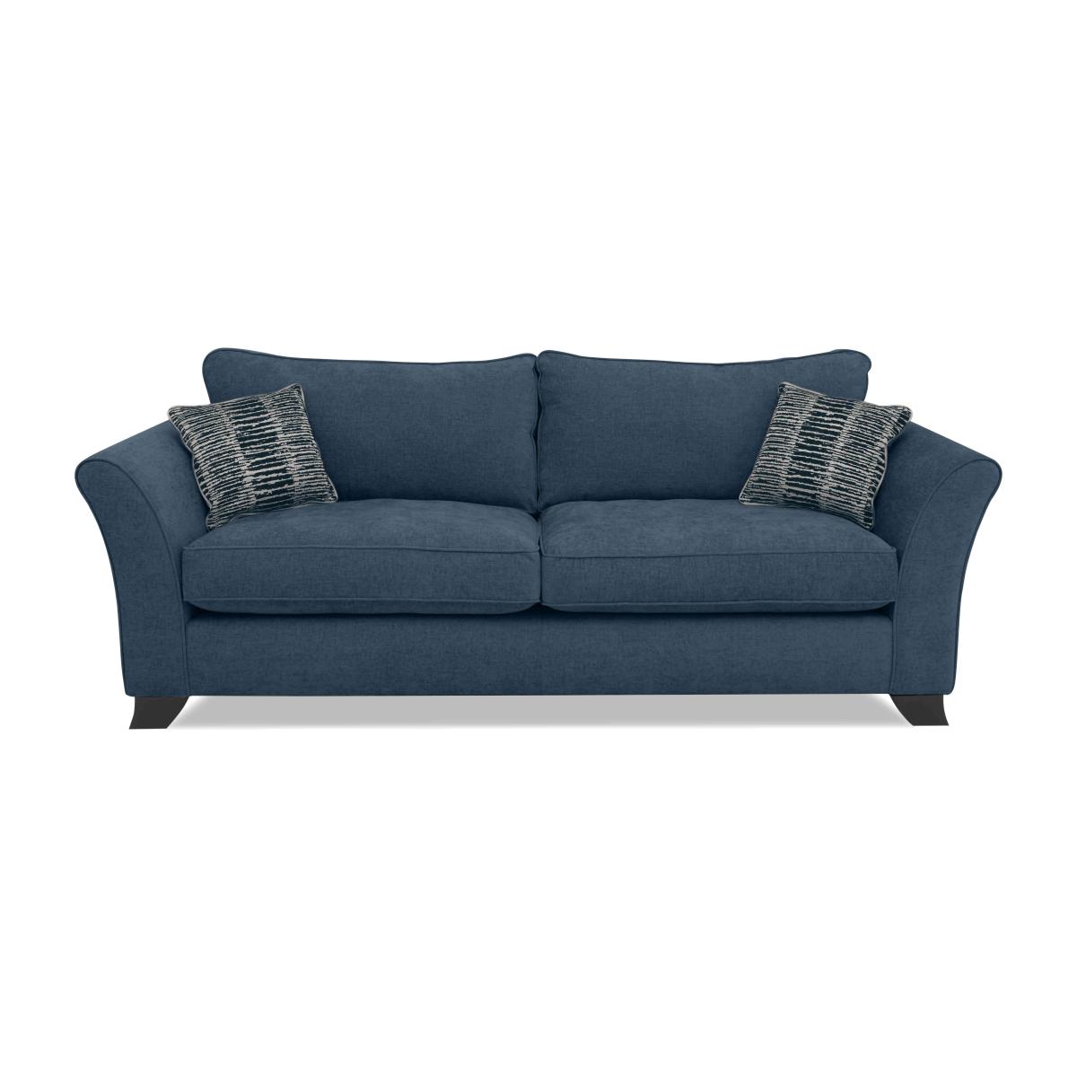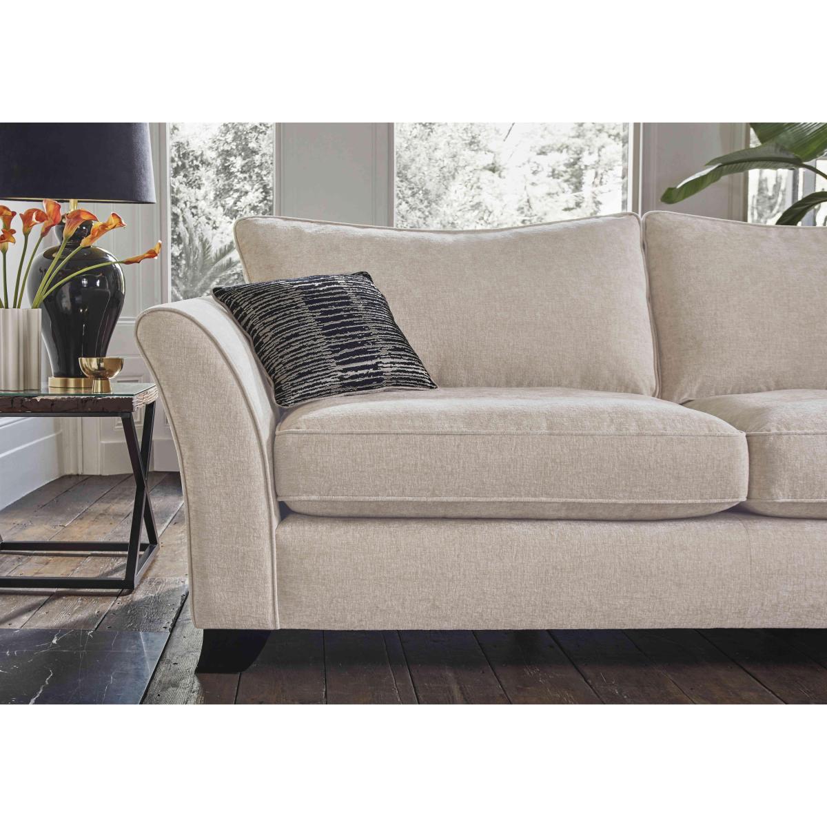 Elegant glam style. Fabulous comfort. Wide choice of sofa styles and sizes. Plenty of accent pieces to complete the look. Our Stellar collection offers all that and more. With sweeping curves and beautiful fabric upholstery the look is striking. Seats are deep and wide and exceptionally comfortable, and you can even upgrade to Encore foam seat interiors and enjoy our 5-year cushion plumpness guarantee. Sofas are available in two styles – scatter back and classic back – and the collection also includes armchairs, storage footstools and even sofa beds so you can give every corner of your living room the Stellar star treatment. The Stellar range is entirely handmade and exclusively available at Furniture Village. Lounge in total comfort and look fabulous glam while you do it. This large four-seater sofa feels absolutely sumptuous and is only available at Furniture Village. Handmade. Why you'll love it Simply stunning large 4-seater classic back sofa is made for relaxation. Glam elegance, exceptional comfort. Upgrade to Encore foam seat cushions with 5-year plumpness guarantee. Stylish symmetry in the swoop of the arms and curve of the dark wood feet. In a choice of upholstery fabrics with matching or contrasting piped edges. With 2 patterned feather-filled scatter cushions. Scatter cushions have the same fabric as the sofa on the reverse. Handmade for Furniture Village. This 4-seater classic back sofa is part of our Stellar range. What you need to know Medium comfort level. Seat suspension: zig-zag springs. Seat cushioning: fibre. Back suspension: elasticated webbing. Back cushioning: fibre. Scatter cushions: feather. Feet are removable. Flattening and shading of heavy wear areas on pile fabrics is unavoidable. Clean regularly using a soft brush or vacuum with the curtain attachment. Deal with any spills promptly. Professional cleaning advised for oil- and grease-based stains. Please read our upholstery care guide for more advice.