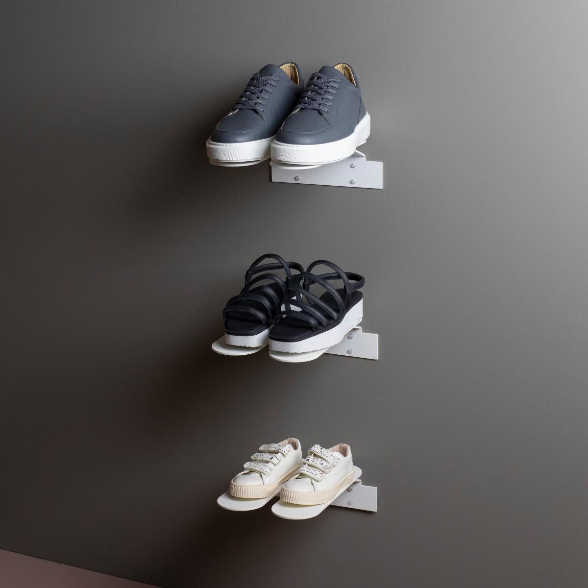 I’m a fan of this pared-back Step shelf because it tucks neatly into narrow hallways or by the back door, freeing up precious floor space while keeping kicks on display. Its slim, white finish suits contemporary, Scandi or minimalist schemes and pairs well with light-wood accents or muted walls. For styling, stagger a pair at different heights to create a stepped effect, then organise shoes by type or colour to keep things tidy. Add a small mirror or a row of coat hooks above to turn the spot into a streamlined drop zone.