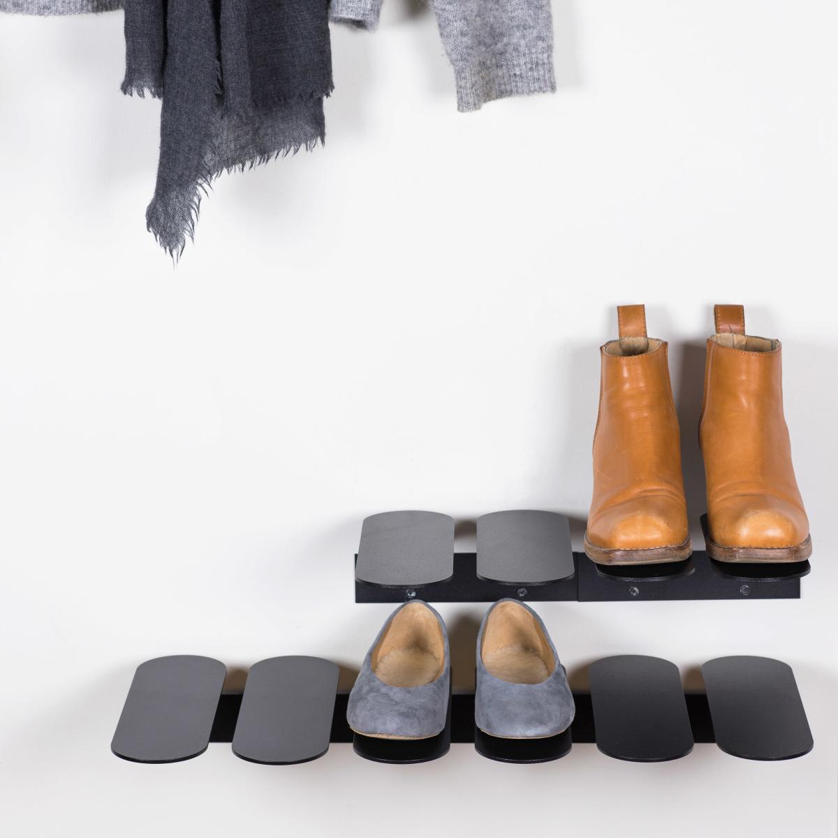 Step shoe shelf from Maze is a modern shoe shelf that can be combined to suit your personal preference and taste. The shoe shelf is designed by Gustav Rosén and looks like floating steps. It´s made in powder coated metal and is produced in Sweden. A functional and decorative detail for your hallway. Choose between different colors!.