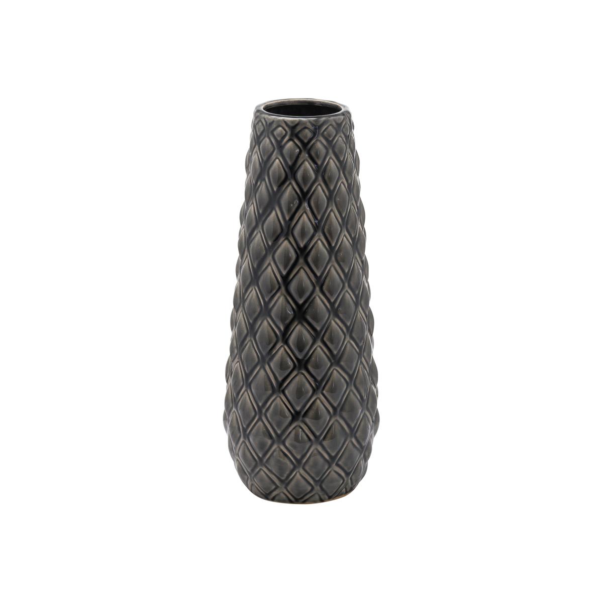I really like this black vase because its textured diamond pattern adds depth and interest to any space. It works particularly well in modern or industrial interiors, where its bold silhouette can stand out, but it also balances nicely with softer textiles or greenery for a more eclectic look. A practical styling tip is to keep floral arrangements simple and sleek, such as single-stem stems or minimalist foliage, to highlight the vase's design without overwhelming it. Its dark tone makes it a versatile piece that anchors arrangements while also functioning as a standalone sculptural element on shelves or side tables.