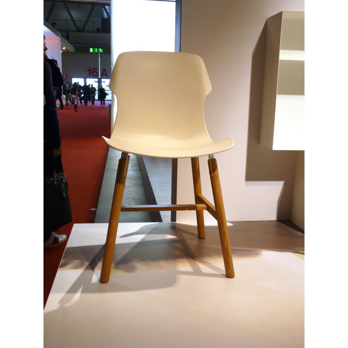 Stereo represents a sitting family designed for Casamania, for the house and the contract, declinations of the same ergonomic body made of propylene. A line marked by flexibility in several different versions, with or without wheels. A complete seating system, available in a range of structures with a choice of painted pre-galvanizedor chromed: stackable 4 leg or sleigh base, swivel chair with gas lift on 4 spoke base, or 5 spoke wheeled base. The polypropylene seat is glossy on the rear and opaque in front. The collection of chairs has been expanded with the introduction of a version with wooden legs. This change gives the chair's design a greater sense of warmth.