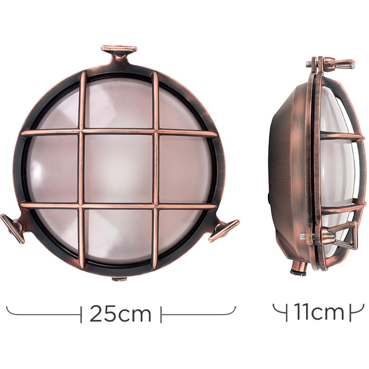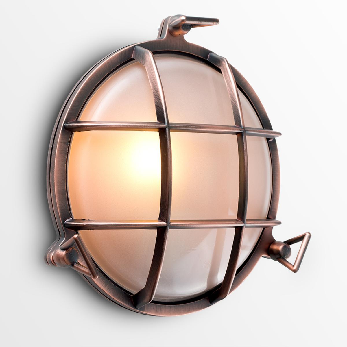 These nautical style outdoor wall lights are perfect for anyone looking to inject a sense of the seven seas into their garden. With an IP64 rating, you don't need to worry about weather or rain damage. Ideal for outdoor walls, garages, porches and patios. These sturdy fittings are available in a sleek copper effect metal finish. Paired with one of our vintage style bulbs you can create a beautiful lantern. 1 x 60w ES E27 GLS Bulb is Required - Not Supplied