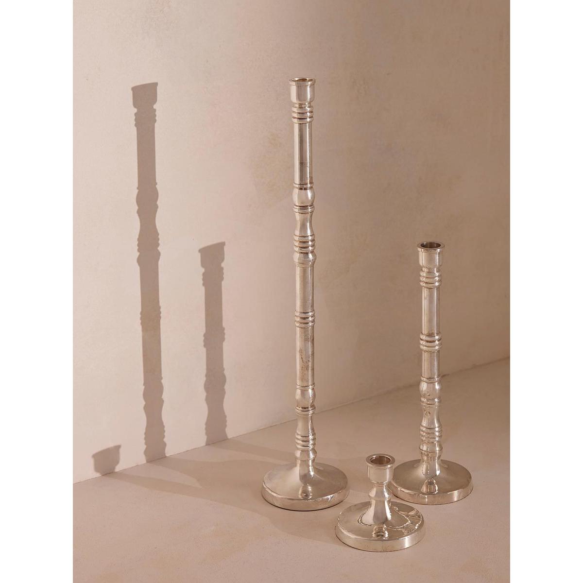This silver-plated candlestick is available in three sizes, designed to be layered along your dining table. Inspired by the interiors of Little House Mayfair, the slender silhouette of the Stiden candlestick is crafted from stainless steel and plated with polished silver.
