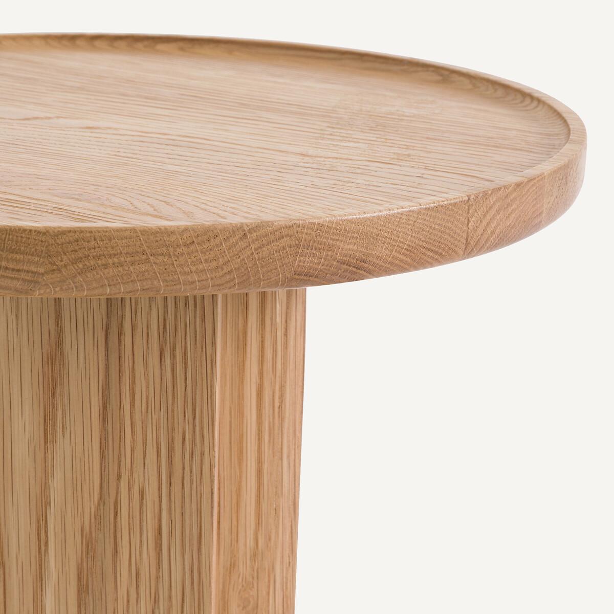 Modern and sculptural, the Stigido side table combines a structural, contemporary design in solid walnut. Designed by AMPM.Product Details • Round hollowed out top in solid FSC® oak • Base in solid oak and FSC® oak veneered MDF • Polyurethane finish. Dimensions • Width: 40cm • Height: 50cm • Depth: 40cmDelivery:. Sold pre-assembled. Available for home delivery. Note! Please check that all access points are large enough to accommodate your delivery (doors, stairs, lifts). • WOOD FROM SUSTAINABLY MANAGED FORESTS. FSC® certified wood comes from forests that are environmentally, socially and economically well managed. Parcel Dimensions 1 parcel • L57 x H32 x D49cm, 15kg