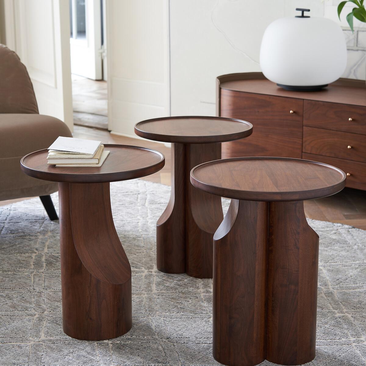 This solid walnut side table offers a beautifully crafted piece that works particularly well in both modern and traditional interiors thanks to its warm, natural finish. I love how versatile it is - it can be styled beside a sofa with a lamp and books, or used as a bedside table in a bedroom. Its sculptural form adds visual interest without overpowering a space. Practical tips include layering with contrasting textures, such as a ceramic lamp or metallic accessories, to add depth. When styling, keep the surface clutter-free for a sleek look, or add a small tray to contain everyday essentials. Its durable wood construction makes it both stylish and functional for everyday use.