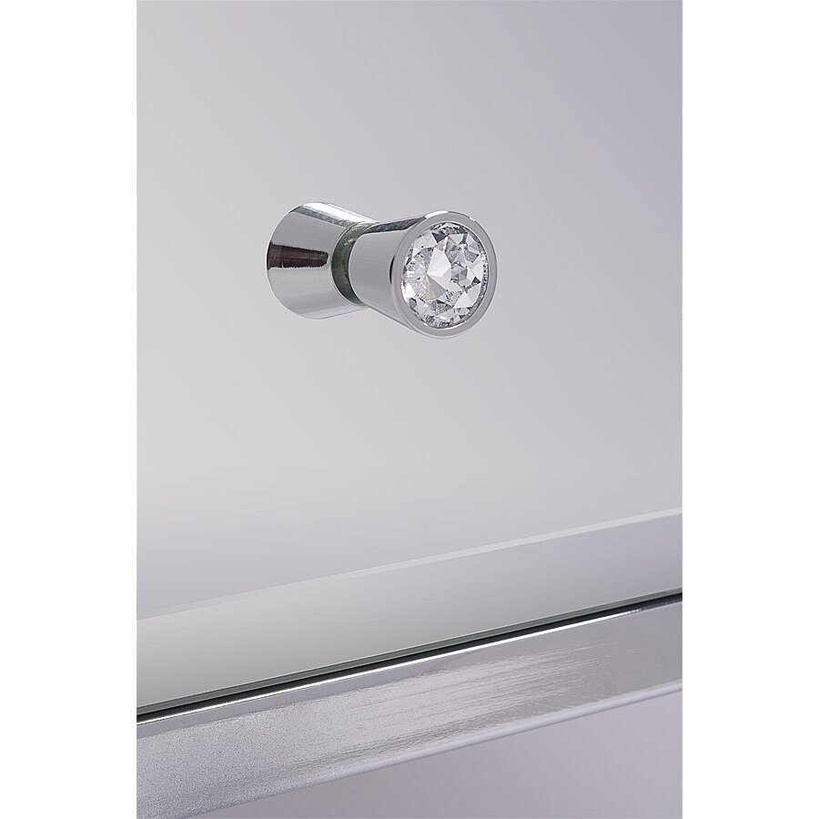 Contemporary design with elegant, tapered chrome frame. Extremely strong and durable toughened mirror glass with deep bevelled edges. Four spacious drawers with black felt lining and soft close mechanism, perfect for organising clothing, bedlinen or other items. Tapered chrome handles with inlaid crystal detail. Minimal assembly required, approximately 5 minutes.