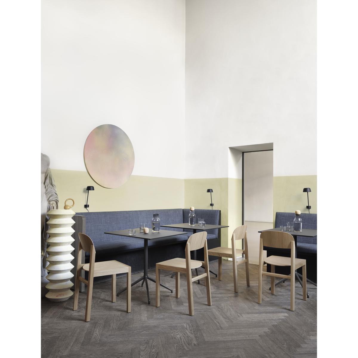 The Still Café table is a sleek, versatile choice that works well in a variety of interiors, from modern minimalist spaces to more industrial or contemporary settings. Its clean lines and understated black finish make it easy to pair with different chair styles and colour schemes. I love its compact size, perfect for small dining nooks or breakfast corners, and the linoleum surface adds a tactile quality that’s practical for everyday use. Styling tips include layering with textured placemats or colourful ceramics to add visual interest, and complementing it with a mix of chairs-perhaps a leather armchair on one side and sleek mid-century dining chairs on the other for an eclectic look. Its simplicity makes it a reliable focal point that can be dressed up or kept pared back depending on your interior mood.
