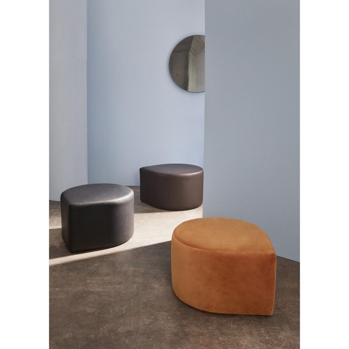 The Stilla ottoman is shaped like a soft and organic petal. It's upholstered in luxurious leather, which embodies an elegant and glamorous attitude. This ottoman will bring a certain cosy vibe into your home. This cushioned ottoman is perfect for creating a lounge space in any room in the house: bedroom, entrance or dressing room, etc.