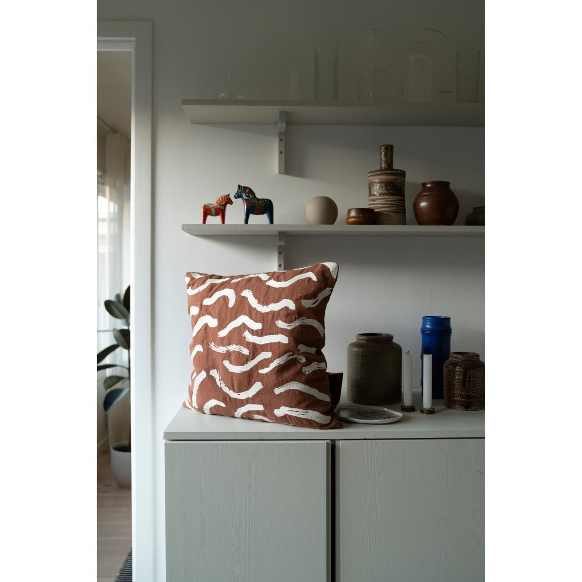I love this little cushion-it's a great way to introduce both colour and texture into a neutral or earthy space. The terracotta hue works beautifully in Scandinavian-inspired interiors, adding warmth without feeling overpowering. It pairs nicely with natural materials like wood, linen, and jute, making it versatile for both sofas and bed arrangements. For a styled look, try mixing it with cushions in contrasting textures or tones, such as soft neutrals or muted greens, to create visual interest. Practical styling tips include using it as an accent piece on a plain sofa or as part of a layered bed setup, where the warm colour can really pop against cooler tones. This cushion is a smart choice for adding a pop of colour while maintaining a relaxed, contemporary look.