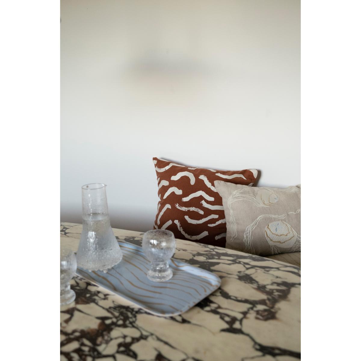 Stim cushion cover 48x48 cm from Swedish Fine Little Day is made of soft strong linen canvas with an embroidered design of a shoal of fish. The cushion cover is designed by Emilia Ilke and is part of the Sea Sea Sea collection that celebrates the sea and its hidden treasures.