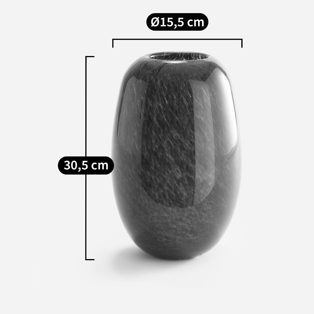 A hand-blown glass vase, imbued with lightness. Topped with a matching glass stopper, Stine is as refined as a perfume bottle. A decorative object in its own right, which can also be used to hold your bouquets once the stopper has been removed. Product Details • Made from hand-blown glass • Removable stopper • Hand-crafted, each piece is unique. Shapes, colours and dimensions may vary slightly from product to product. Dimensions • Diameter: 15.5cm • Height: 30.5cm. Dimensions and weight of parcel • 1 parcel • W35 x H21 x D29.5cm. 2.7kg