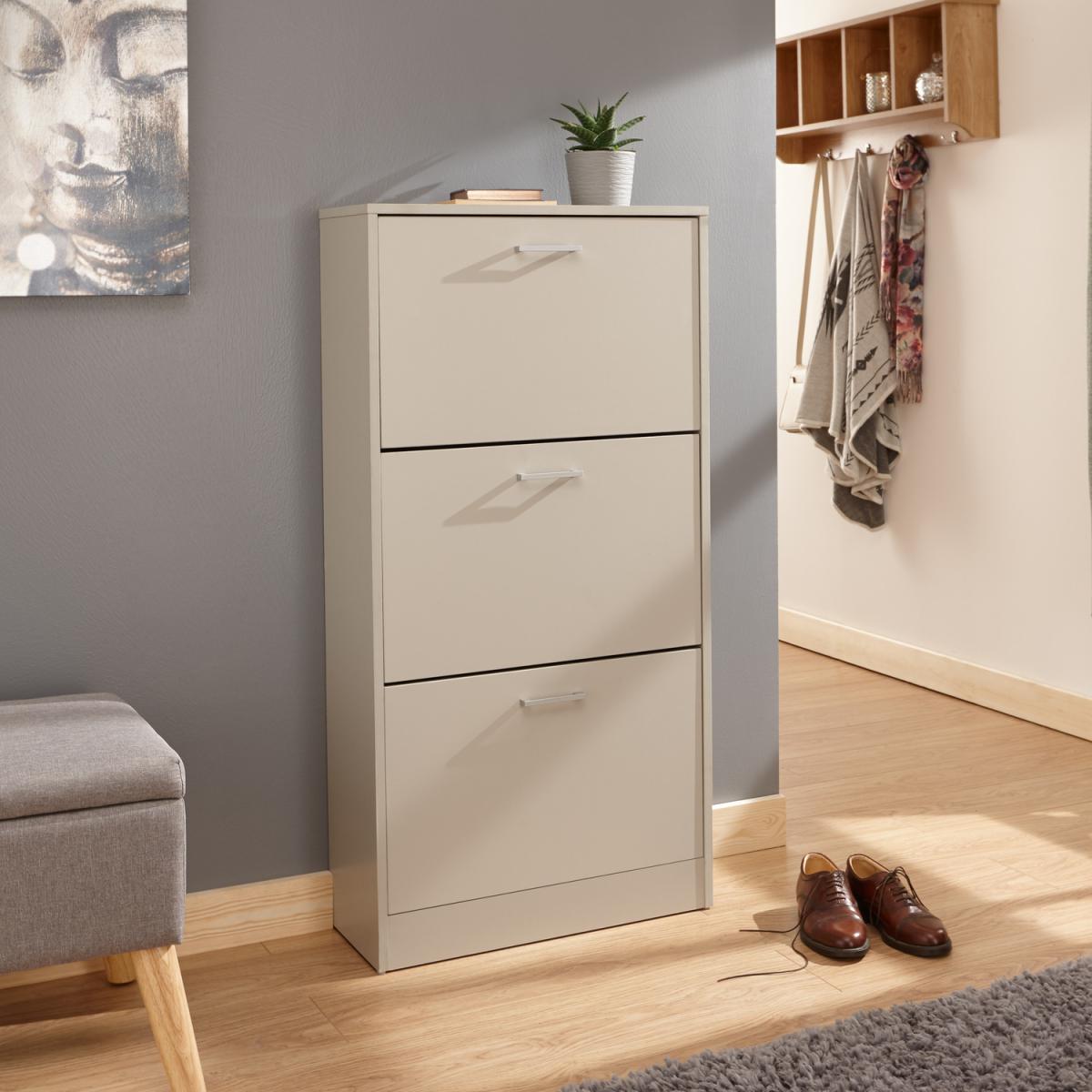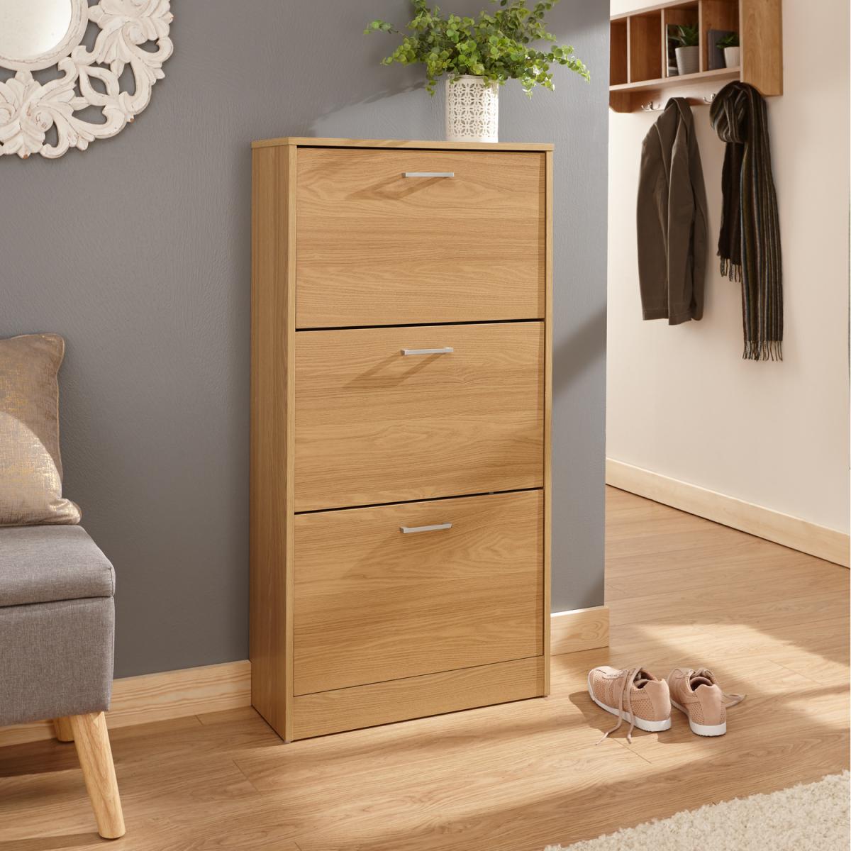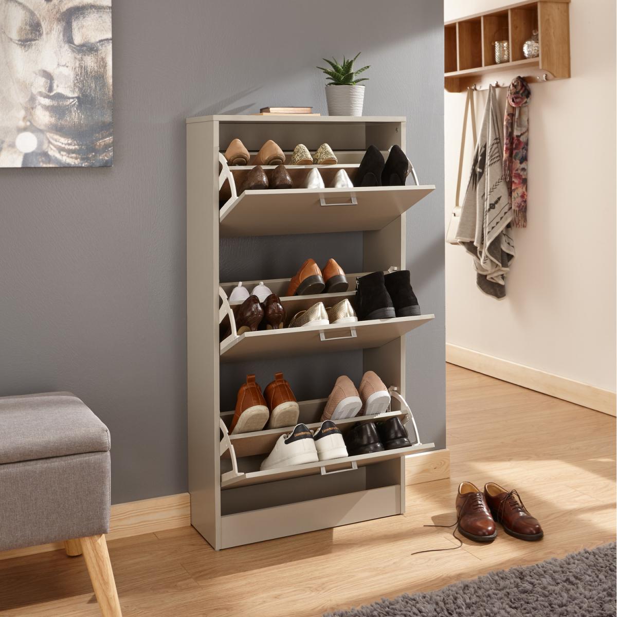This slim, stylish three-tiered shoe cabinet would look great in any hallway. The Stirling is available in a number of different finishes and features 3 shoe storage sections, capable of holding up to 6 pairs of shoes each.