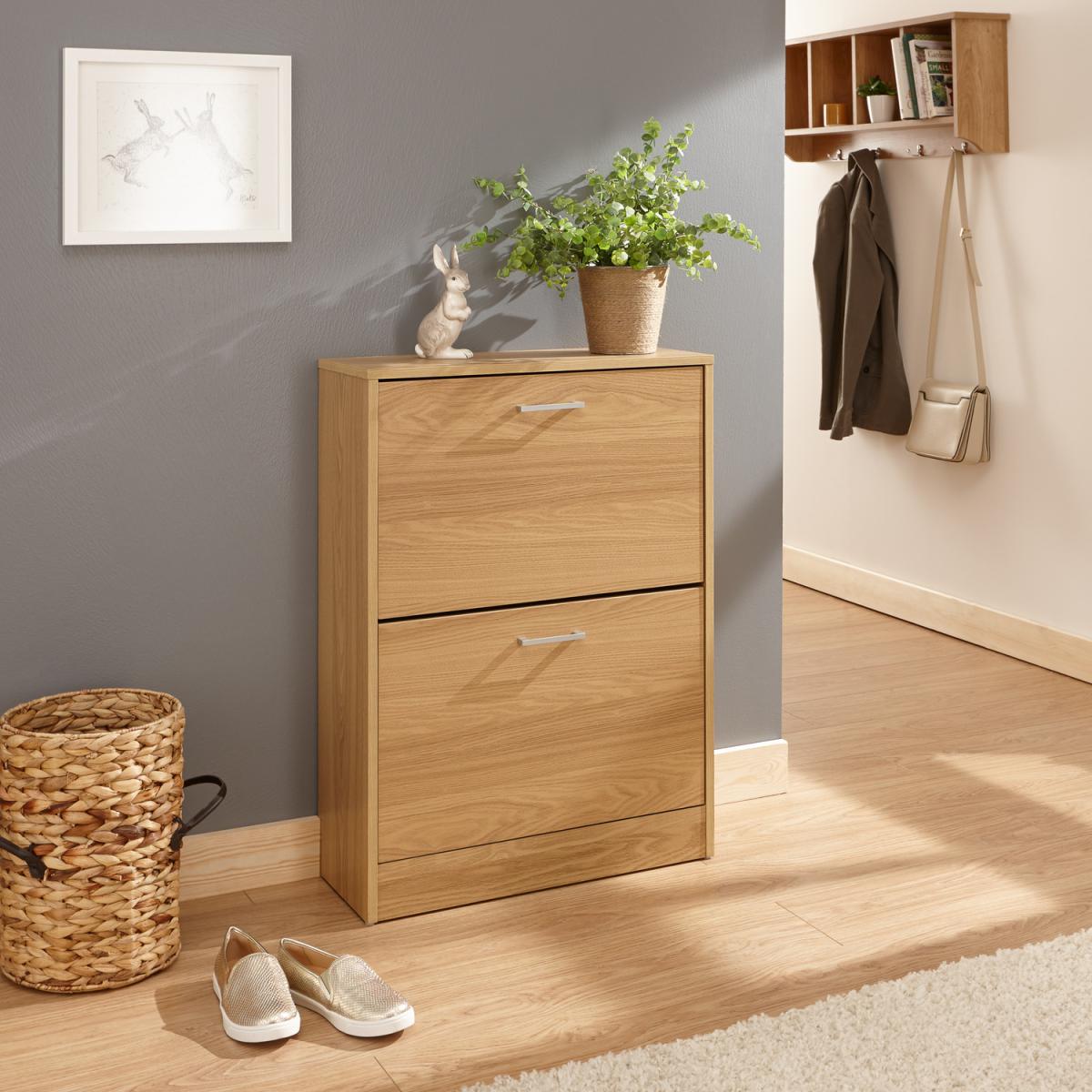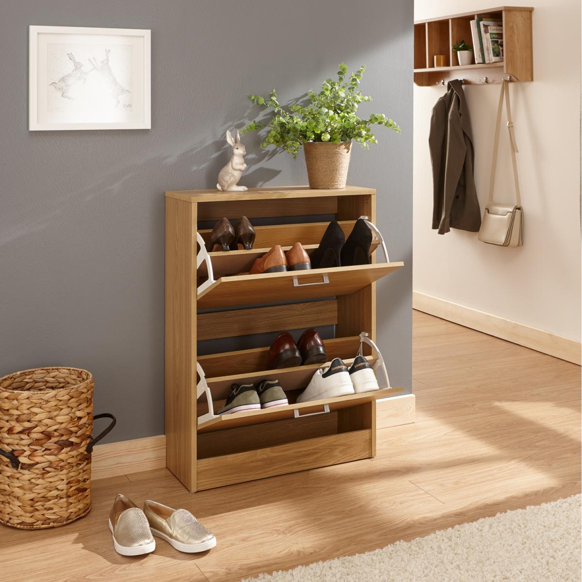 This slim, stylish two-tiered shoe cabinet would look great in any hallway. The Stirling is available in a number of different finishes and features 2 shoe storage sections, capable of holding up to 6 pairs of shoes each.