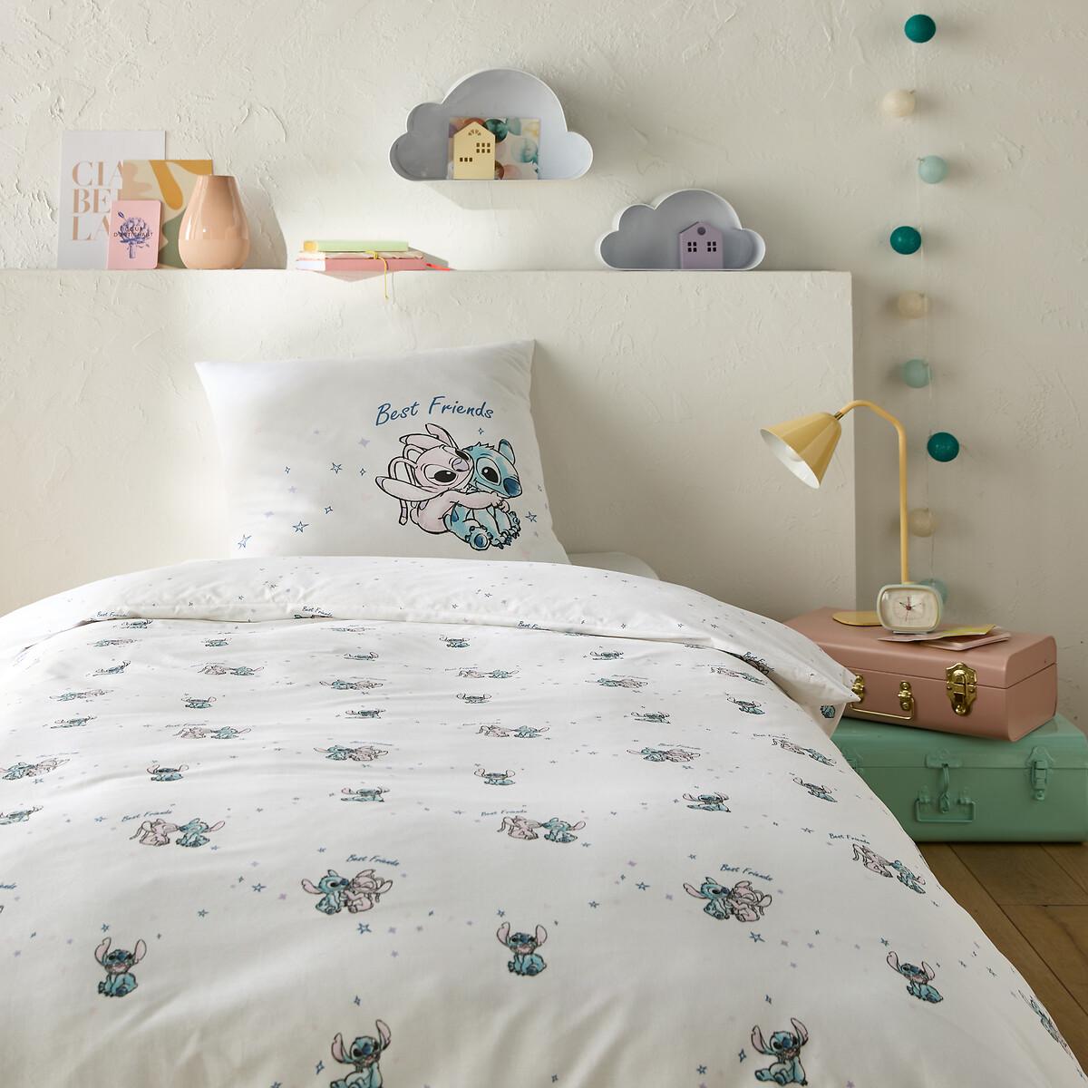 Stitch and his friend Angel invite your child to come on dreamland adventures! This bedding set consists of a duvet cover and a pillowcase. An exclusive Disney Stitch design for La Redoute Interiors. Cotton is part of our daily lives. We love it for its suppleness and softness. Easy Care, it is ideal for the beds of young and old alike!Product Details • 100% cotton • 144 thread count • Duvet cover and pillowcase with Stitch and Angel printed on the front; reverse side printed with stars • Envelope-style opening. Care Advice • Machine washable at 40°CSize • Duvet cover 140 x 200cm + 1 pillowcase 63 x 63cm • OEKO-TEX® Standard 100. Standard 100 certification by OEKO-TEX® tests textile products for harmful substances via an independent, international label.