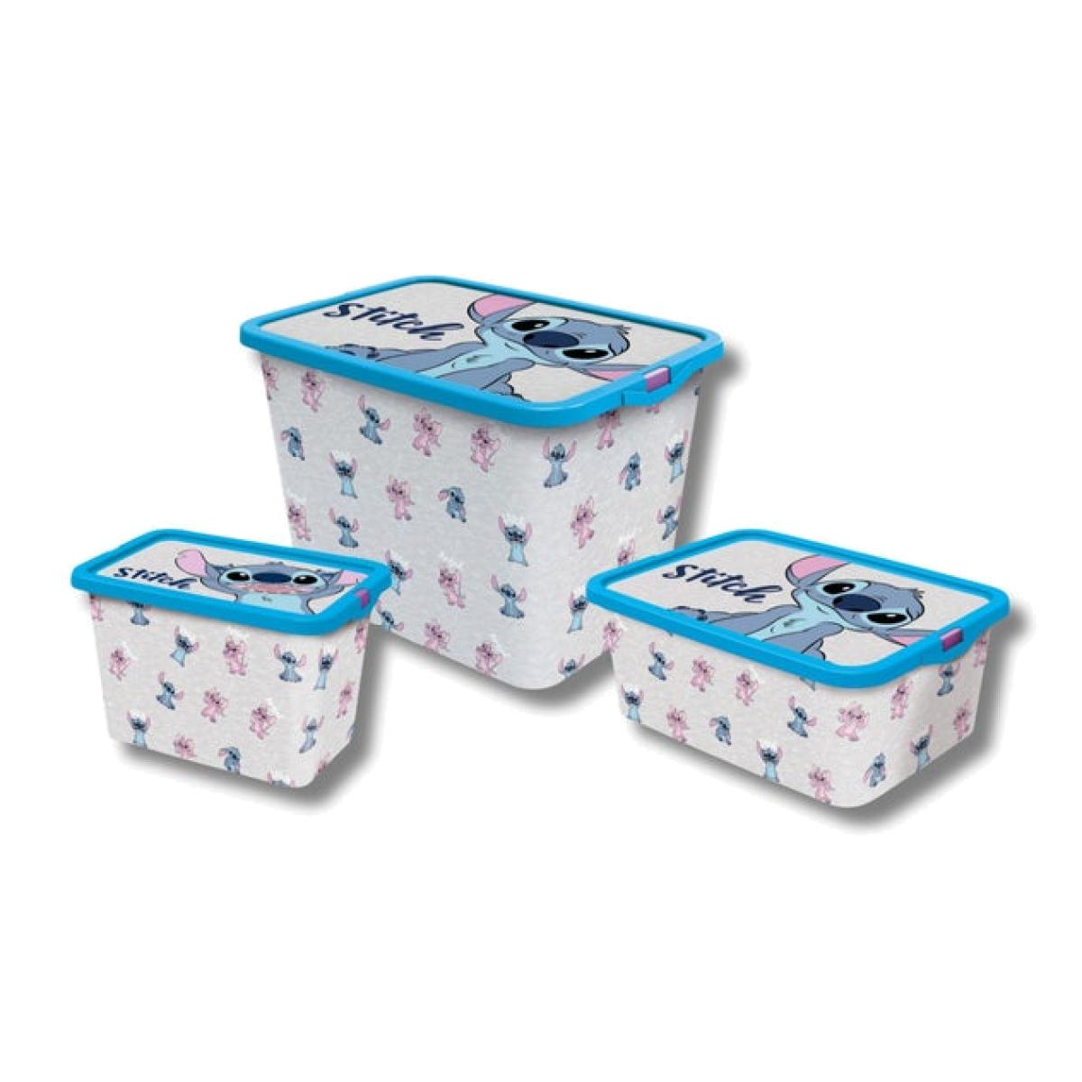 * Adorable Stitch design and print * Ideal for storing away toys, clothes, shoes and more! * Click-lock lid for security * Supplied as a set of 3 in different sizes Tidy up with a touch of Disney magic! This set of three Stitch storage boxes is perfect for keeping bedrooms, playrooms, and little corners of chaos neat and organised. With their bold, colourful design and cheeky Stitch character, they’re sure to bring a smile to any fan’s face. Each box is crafted from durable, high-quality materials to handle everyday use with ease, whether it’s toys, clothes, shoes, or those bits and bobs that need a home. The secure click-lock lids help keep everything dust-free and in its place, so you can spend less time tidying and more time having fun.