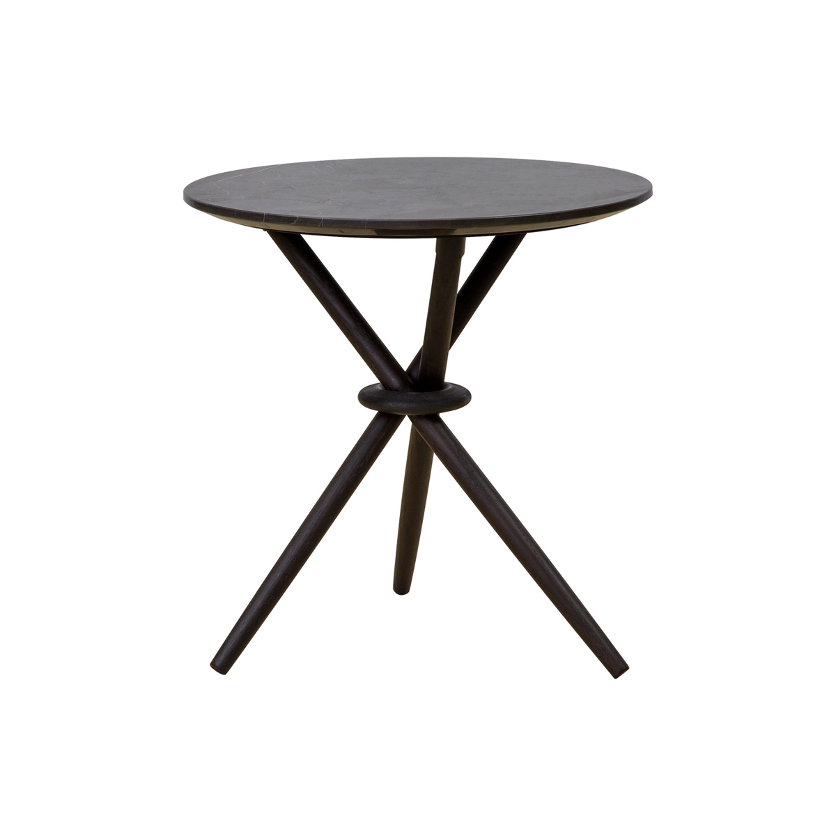 Exclusively designed by Magnus Long for The Conran Shop, the Stix Side Table in graphite and black is an instant design classic. Exquisitely crafted in Italy from the highest quality materials, the table features a uniquely veined graphite top and three black-stained European oak legs interlocked in a unique way to create a circular array of triangles. The resulting structure is one of uncompromising style and stability. Magnus Long’s original vision for this statement design originated as three cocktail sticks with a piece of bent wire twisted around the waist and elegantly splayed.