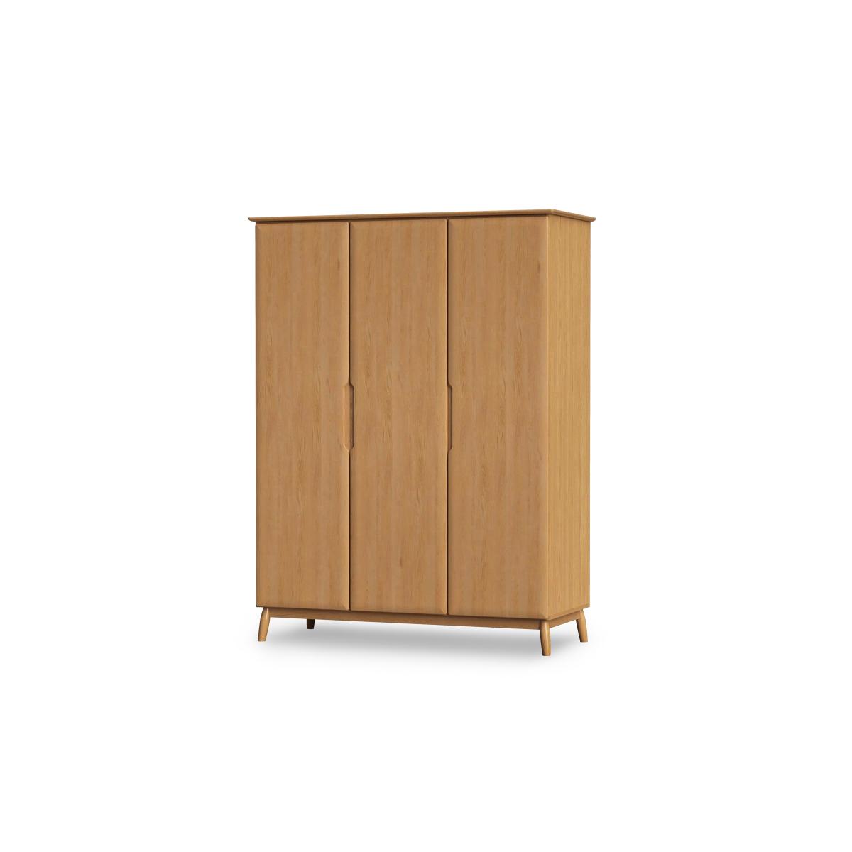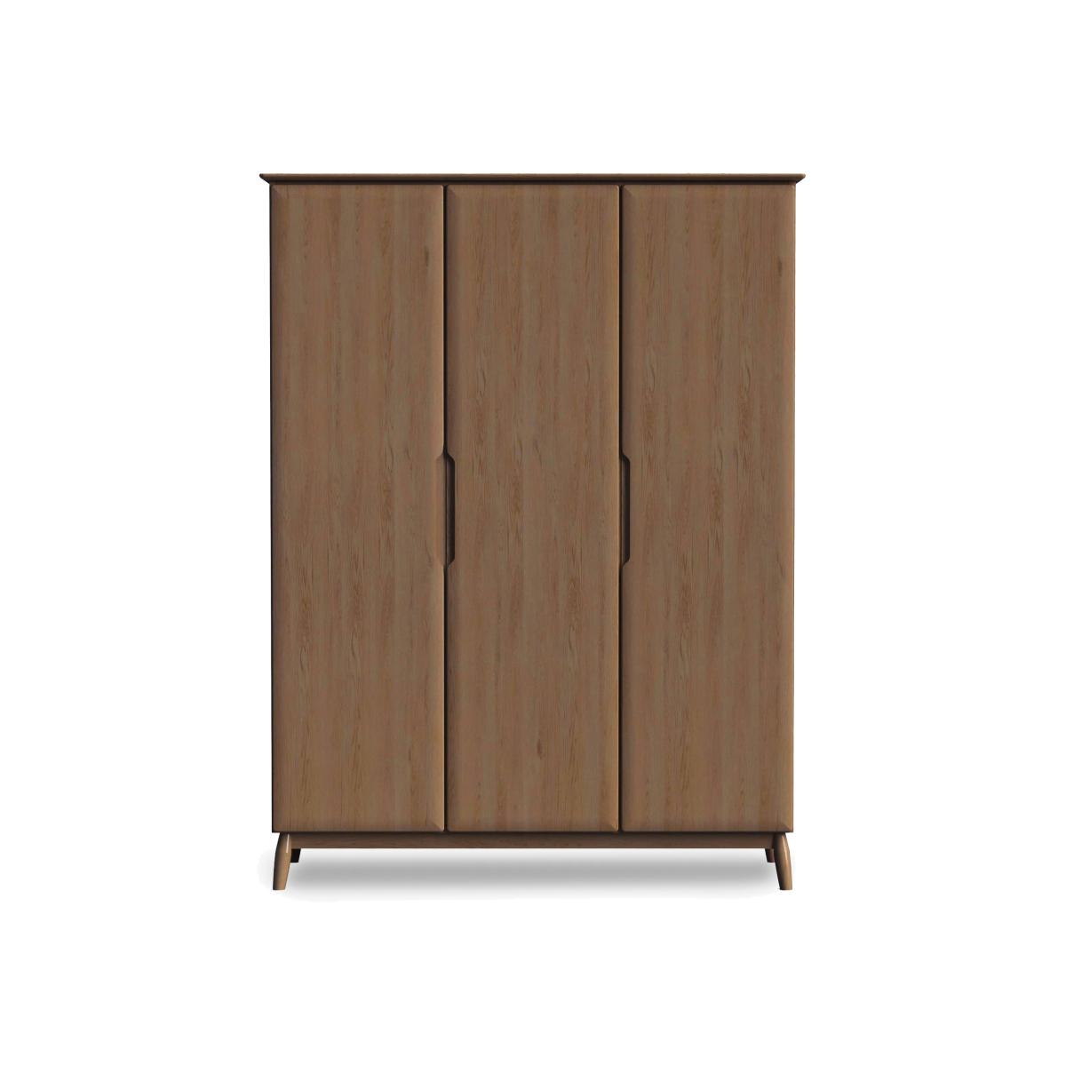 A contemporary interpretation of mid-century modern style, our handmade Stockholm bedroom furniture range stays true to its inspiration with recessed door and drawer handles, rounded splayed legs and a proliferation of gentle curves and rounded edges. It also offers a beautifully crafted oak and oak veneer finish in a choice of light or dark oak. Alongside a bed frame with a classic slim-spindled headboard, the range includes a wide choice of spacious and space-efficient storage pieces from bedside tables to chests of drawers to perfectly proportioned wardrobes, all designed with modern bedrooms in mind. The stylish Stockholm look is also available in dining and living room furniture. Make the most of your space with this roomy and stylish three-door wardrobe, part of our mid-century style Stockholm bedroom furniture range. Why you'll love it Contemporary mid-century modern style in oak and oak veneer. Spacious wardrobe brings home chic design. Choice of dark oak and light oak finish. Signature details include recessed handles, angled legs and smooth rounded edges. Arrives partially built for easier assembly. Handmade with care. This 3-door wardrobe is part of the Stockholm bedroom furniture range. What you need to know 1 fixed shelf and1 hanging rail in each compartment. Oak and oak veneer surfaces will show colour variation. Knots, filled knots and other markings are to be expected. Avoid placing in direct sunlight or close to a heat source. We recommend using placemats and coasters at all times. Love the look? Be sure to browse our Stockholm dining furniture range too. WARNING! Item code: STO-ROB3-DO-001