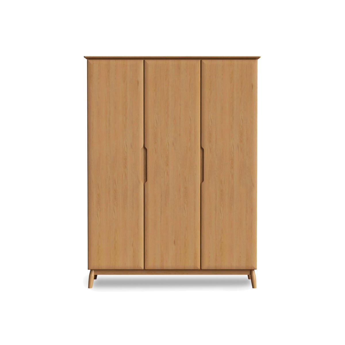 A contemporary interpretation of mid-century modern style, our handmade Stockholm bedroom furniture range stays true to its inspiration with recessed door and drawer handles, rounded splayed legs and a proliferation of gentle curves and rounded edges. It also offers a beautifully crafted oak and oak veneer finish in a choice of light or dark oak. Alongside a bed frame with a classic slim-spindled headboard, the range includes a wide choice of spacious and space-efficient storage pieces from bedside tables to chests of drawers to perfectly proportioned wardrobes, all designed with modern bedrooms in mind. The stylish Stockholm look is also available in dining and living room furniture. Make the most of your space with this roomy and stylish three-door wardrobe, part of our mid-century style Stockholm bedroom furniture range. Why you'll love it Contemporary mid-century modern style in oak and oak veneer. Spacious wardrobe brings home chic design. Choice of dark oak and light oak finish. Signature details include recessed handles, angled legs and smooth rounded edges. Arrives partially built for easier assembly. Handmade with care. This 3-door wardrobe is part of the Stockholm bedroom furniture range. What you need to know 1 fixed shelf and1 hanging rail in each compartment. Oak and oak veneer surfaces will show colour variation. Knots, filled knots and other markings are to be expected. Avoid placing in direct sunlight or close to a heat source. We recommend using placemats and coasters at all times. Love the look? Be sure to browse our Stockholm dining furniture range too. WARNING! Item code: STO-ROB3-LO-001