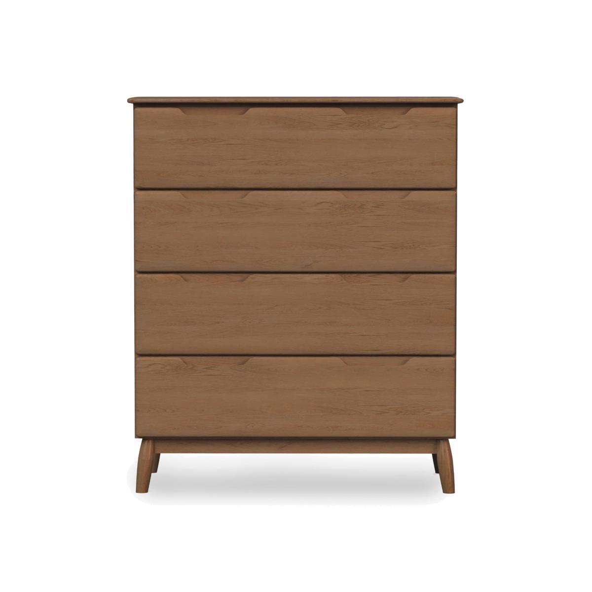 A contemporary interpretation of mid-century modern style, our handmade Stockholm bedroom furniture range stays true to its inspiration with recessed door and drawer handles, rounded splayed legs and a proliferation of gentle curves and rounded edges. It also offers a beautifully crafted oak and oak veneer finish in a choice of light or dark oak. Alongside a bed frame with a classic slim-spindled headboard, the range includes a wide choice of spacious and space-efficient storage pieces from bedside tables to chests of drawers to perfectly proportioned wardrobes, all designed with modern bedrooms in mind. The stylish Stockholm look is also available in dining and living room furniture. Enjoy spacious storage that’s just so stylish. This four-drawer chest of drawers channels mid-century modern style and comes in a choice of oak finish. Why you'll love it Contemporary mid-century modern style in oak and oak veneer. This 4-drawer chest brings practical storage to any bedroom. Choice of dark oak and light oak finish. Signature details include recessed handles, angled legs and smooth rounded edges. Easy-glide drawer runners. Arrives fully built – no self-assembly required. Handmade with care. This 4-drawer chest of drawers is part of the Stockholm bedroom furniture range. What you need to know Oak and oak veneer surfaces will show variation in colour. Knots, filled knots and other markings are to be expected. Avoid placing in direct sunlight or close to a heat source. We recommend using placemats and coasters at all times. Love the look? Be sure to browse our Stockholm dining furniture range too. WARNING!
