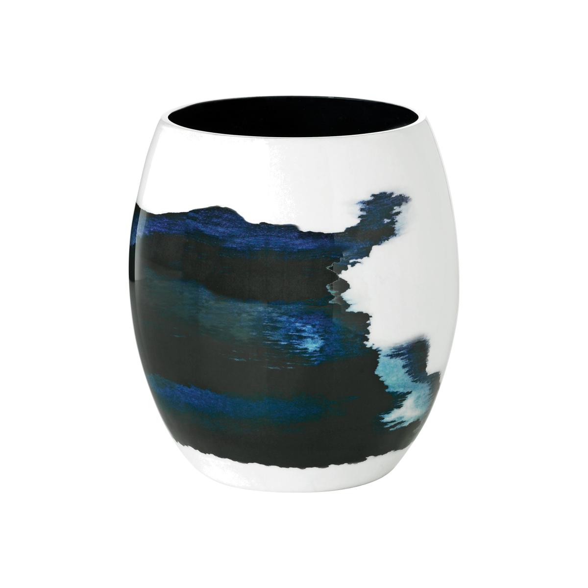 The bold Stockholm Aquatic vase from Stelton is designed by the Swedish designer duo Bernadotte & Kylberg which consist of the royal prince Carl-Philip Bernadotte and the designer Oscar Kylberg. The vase is a part of the Stockholm collection which is inspired by the Stockholm archipelago and the Baltic Sea with its artistic blue color palette. The vase is made of enamel and aluminum with a nice round shape, each piece is finished by hand for a perfect touch and unique expression. The blue pattern was first created by working with Indian ink on wet watercolor paper which resulted in this dramatic and breathtaking collection that consists of bowls and vases in different sizes.