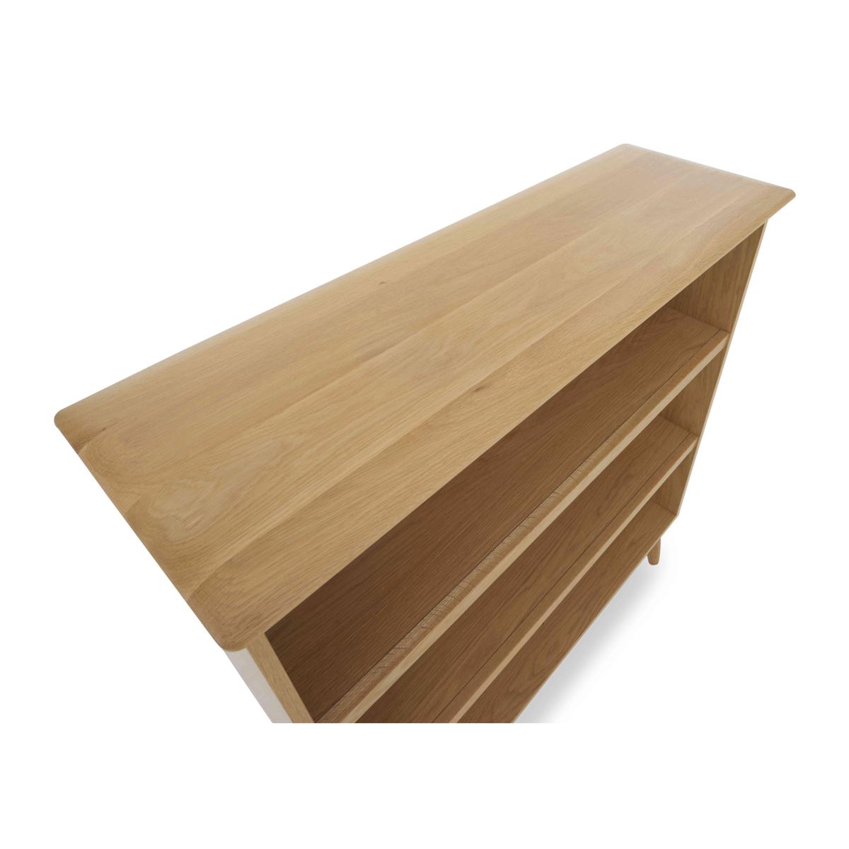 Mid-century modern design meets contemporary dining style in our Stockholm range of dining room furniture, living room storage furniture and occasional tables. With gentle curves, slender legs and recessed cupboard door handles, it’s a look that’s sure to stand the test of time. And handmade from solid oak and oak veneer, the craftsmanship is quite superb. This extensive collection includes a huge choice of dining sets that feature the range’s dining tables and dining chairs as well as stylish sideboards, TV cabinets and occasional tables. The Stockholm dining furniture range is exclusively available at Furniture Village. This timeless style is also available as bedroom furniture. Arrange your favourite books or ceramic pieces on the wide and deep shelves of this stylish mid-century bookcase in oak and oak veneer. Why you'll love it Simple and elegant this bookcase makes a wonderful display unit. Contemporary mid-century modern style in oak and oak veneer. Choose light or dark oak with a soft-sheen lacquer finish. Signature details include angled legs and smooth rounded edges. Handmade with care. Exclusive to Furniture Village. This bookcase is part of the Stockholm dining furniture range. What you need to know Oak and oak veneer surfaces will show variation in colour. Knots, filled knots and other markings are to be expected. Avoid placing in direct sunlight or close to a heat source. We recommend using placemats and coasters at all times. Love the look? Be sure to browse our Stockholm bedroom furniture range too. WARNING!