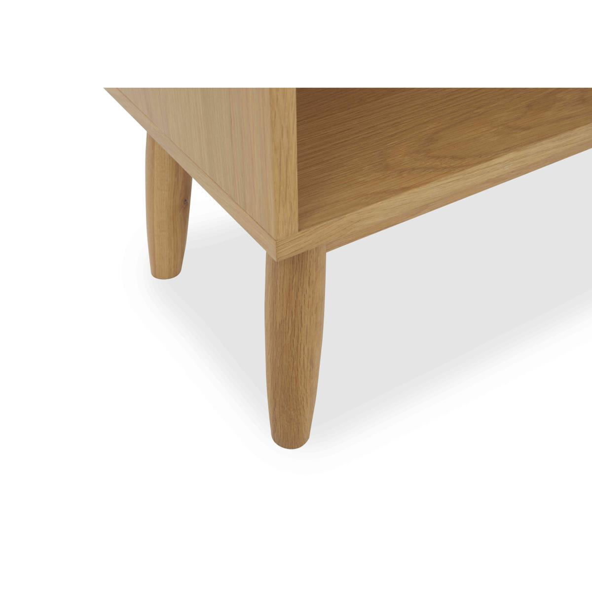 Mid-century modern design meets contemporary dining style in our Stockholm range of dining room furniture, living room storage furniture and occasional tables. With gentle curves, slender legs and recessed cupboard door handles, it’s a look that’s sure to stand the test of time. And handmade from solid oak and oak veneer, the craftsmanship is quite superb. This extensive collection includes a huge choice of dining sets that feature the range’s dining tables and dining chairs as well as stylish sideboards, TV cabinets and occasional tables. The Stockholm dining furniture range is exclusively available at Furniture Village. This timeless style is also available as bedroom furniture. Arrange your favourite books or ceramic pieces on the wide and deep shelves of this stylish mid-century bookcase in oak and oak veneer. Why you'll love it Simple and elegant this bookcase makes a wonderful display unit. Contemporary mid-century modern style in oak and oak veneer. Choose light or dark oak with a soft-sheen lacquer finish. Signature details include angled legs and smooth rounded edges. Handmade with care. Exclusive to Furniture Village. This bookcase is part of the Stockholm dining furniture range. What you need to know Oak and oak veneer surfaces will show variation in colour. Knots, filled knots and other markings are to be expected. Avoid placing in direct sunlight or close to a heat source. We recommend using placemats and coasters at all times. Love the look? Be sure to browse our Stockholm bedroom furniture range too. WARNING!
