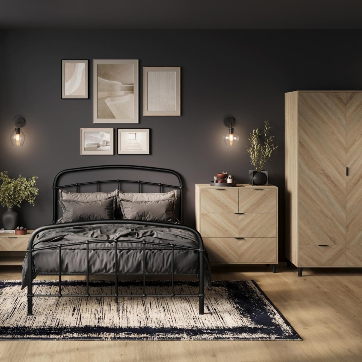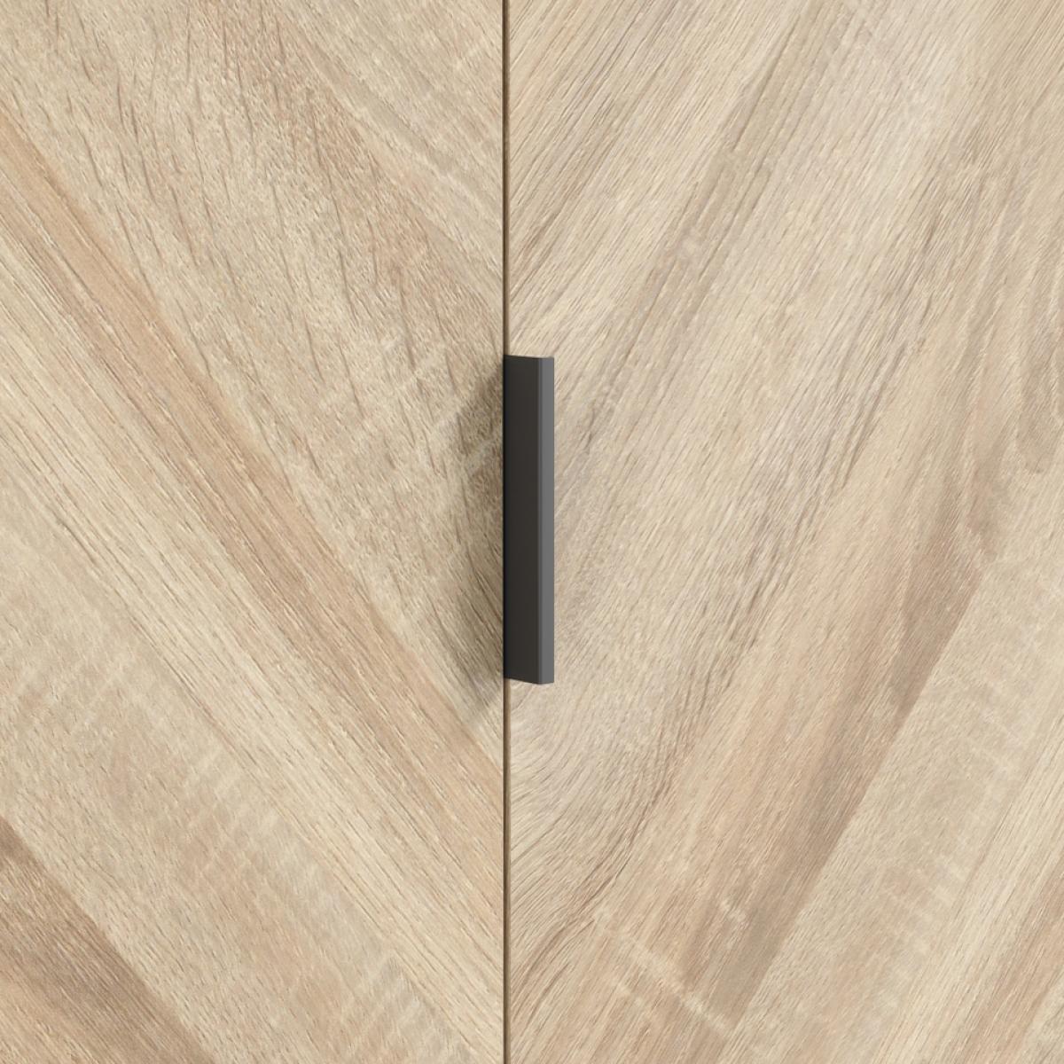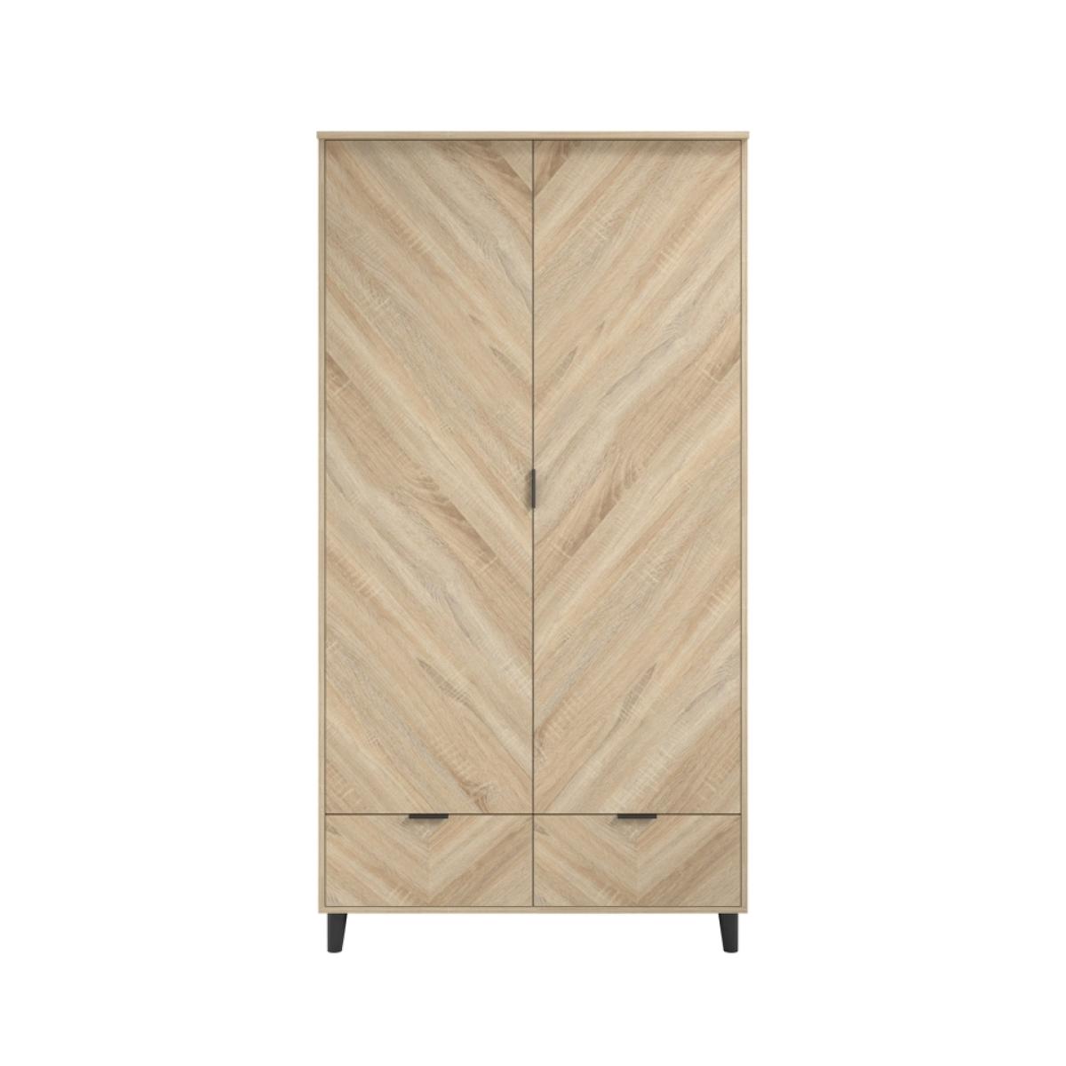 The Stockholm double wardrobe is a sleek storage solution that combines modern design with functional elegance. Featuring a striking chevron pattern in Sonoma Oak, and integral handles, this wardrobe adds a touch of contemporary flair to any space. The matte black legs provide a subtle contrast, elevating its aesthetic appeal. With ample storage space and stylish design elements, the Stockholm wardrobe is the perfect addition to your bedroom or dressing area.