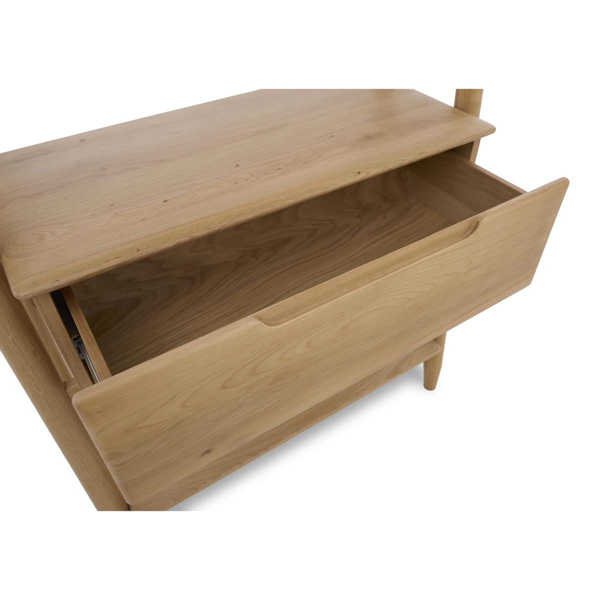 The Stockholm shelving unit in light oak offers a versatile and modern storage solution with its open design and natural finish. It works particularly well in contemporary and Scandi-inspired interiors, adding warmth and texture without feeling bulky. Practical styling tips include pairing it with a mix of books, curated decorative objects, and plants to create a lived-in yet curated look. Its open shelves make it perfect for displaying everyday essentials or statement pieces, while the drawer provides discreet storage. To avoid clutter, consider grouping items by colour or theme, and use accessories like baskets or boxes on the lower shelf for a neat finish. This piece is ideal for living rooms, bedrooms, or home offices where both function and aesthetic matter.