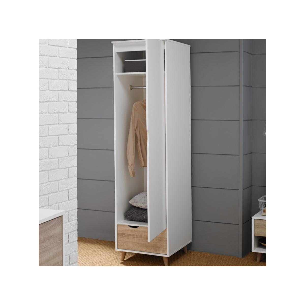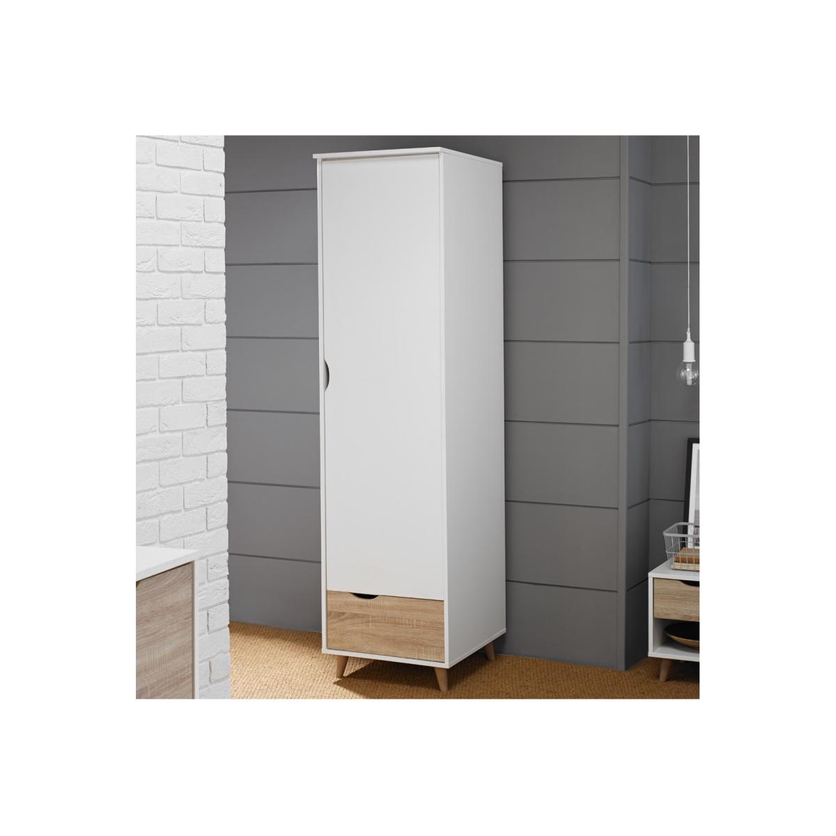 Features we love Scandinavian design is both stylish and modern Maximized room layout in a smaller bedroom or apartment Integrated handle enhances its simple design and ease of use Complemented with other pieces from the collection to create a fresh look throughout the bedroom Retro style adds a touch of nostalgia and personality to the space All about me The Stockholm one-door wardrobe offers an attractive and affordable solution for those looking for a modern and stylish bedroom décor, while ensuring a coordinated and fresh living space. Whether you're looking for affordability, functionality or a modern aesthetic, this wardrobe has you covered. Need to know Dimensions:W50 x D58 x H190 cm Packaging dimensions (1 box):W61 x D185.8 x H9.3 cm Weight: 48 kg Colour: White Finish: Matt Material: MFC Assembly required: Yes