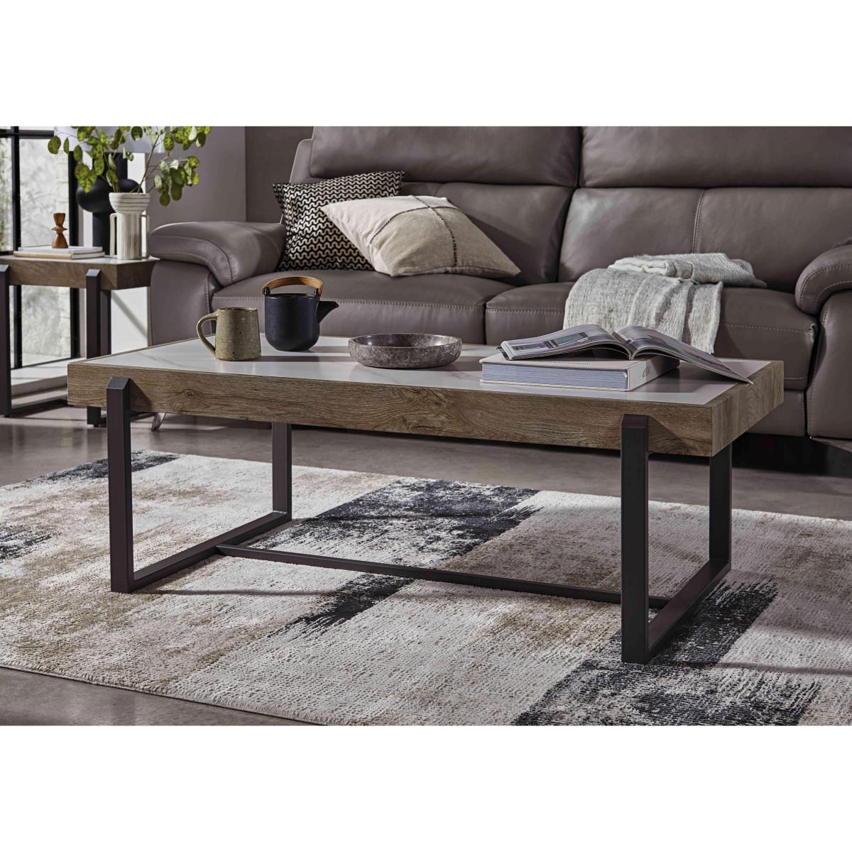 Urban design meets contemporary elegance in our Stokes coffee table. The beautiful sintered stone top is very durable. Great value too. Why you'll love it This on-trend fusion of finishes is chic and stylish. Designed for modern living and at a great-value price. Sleek and durable sintered stone top. Table edge has a contrasting wood-effect finish. Grey powder-coated metal U-shaped legs. Practical easy-care finish. This coffee table is part of our Stokes range. What you need to know Table top is made from sintered stone, which is created using natural stone. Metal legs. We recommend the use of coasters and placemats. Wipe clean with a soft, slightly damp cloth and dry with a soft duster. Do not use abrasive cleaning products.