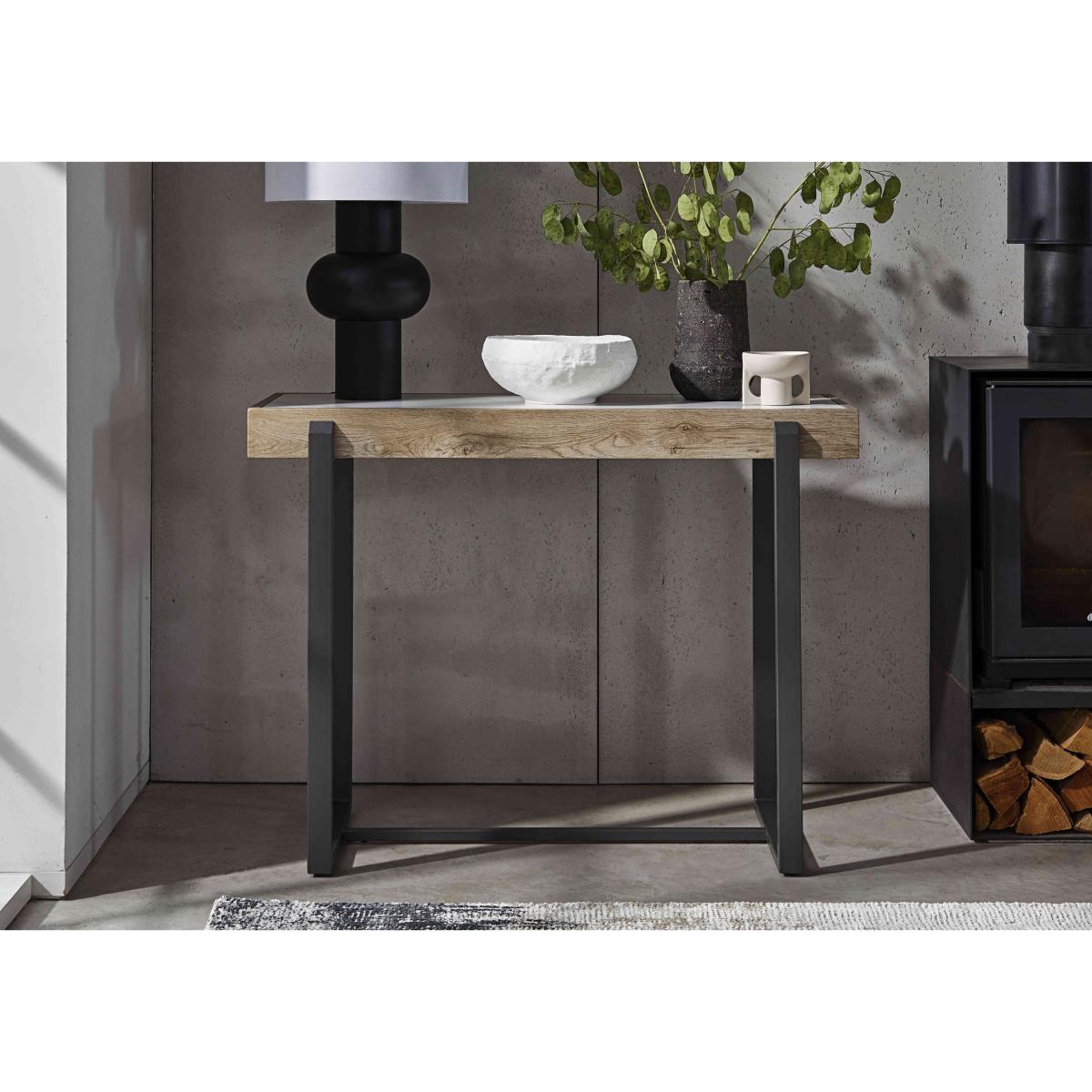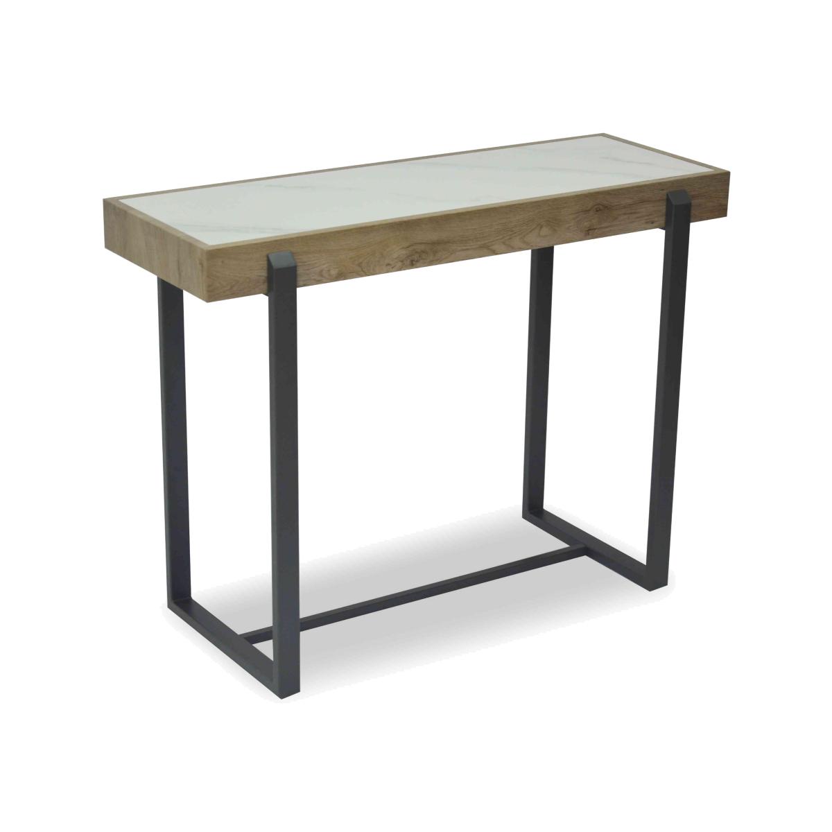This space-saving sofa side table is perfect for a smaller room. You’ll love the contemporary urban finishes – that sleek sintered stone top and grey metal U-shaped legs. Great price. Why you'll love it This on-trend fusion of finishes is chic and stylish. Designed for modern living and at a great-value price. Sleek and durable sintered stone top. Table edge has a contrasting wood-effect finish. Grey powder-coated metal U-shaped legs. Practical easy-care finish. This sofa table is part of our Stokes range. What you need to know Table top is made from sintered stone, which is created using natural stone. Metal legs. We recommend the use of coasters and placemats. Wipe clean with a soft, slightly damp cloth and dry with a soft duster. Do not use abrasive cleaning products.