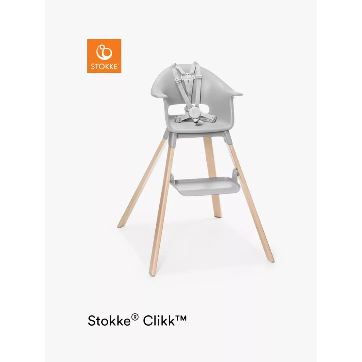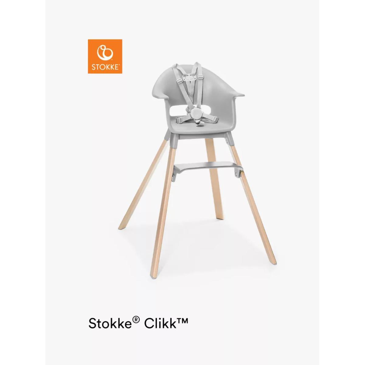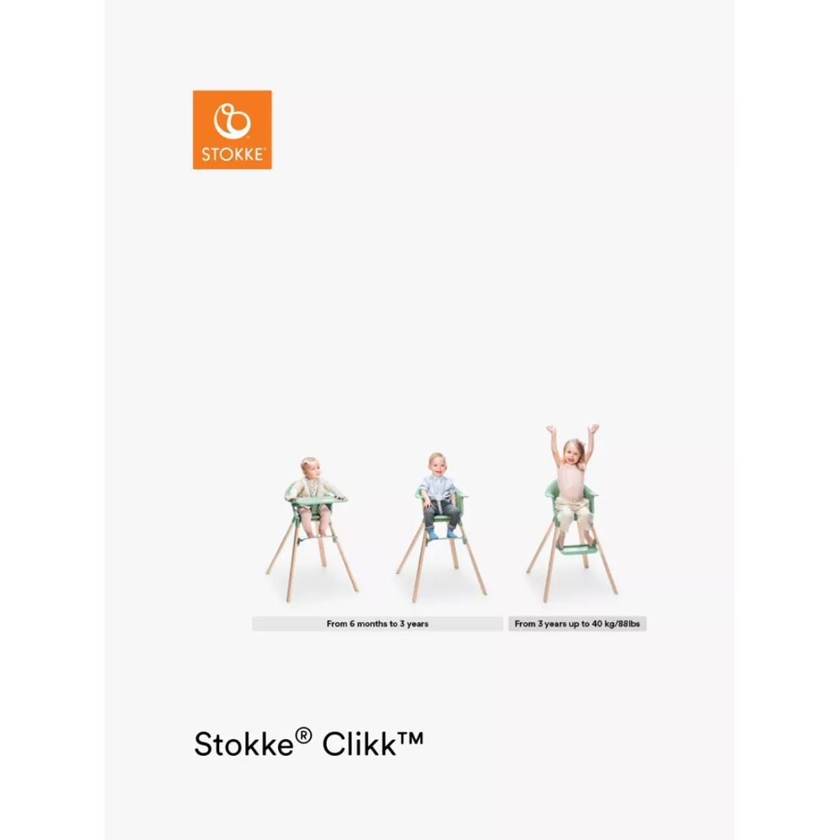 The Stokke® Clikk highchair has been developed to address all your needs for family mealtimes. Beautifully designed with smooth lines means you're ready for easier, cleaner and closer mealtimes in just 1-2-3 Clikk. Key features: All needed parts come included - high chair, tray & harness Tool-free assembly that's quick and simple Lightweight and travel-friendly Easy to wipe clean with smooth surfaces from top to bottom Harness easy to remove for cleaning, machine washable Detachable and dishwasher safe tray Ergonomically designed for children from 6 months to 3 years Three configurations for optimal seating at each age Adjustable foot rest offers two positions The Stokke® Clikk™ highchair with tray and harness is intended for children able to sit up unaided and up to 3 years or a maximum weight of 15 kg/ 33lbs.