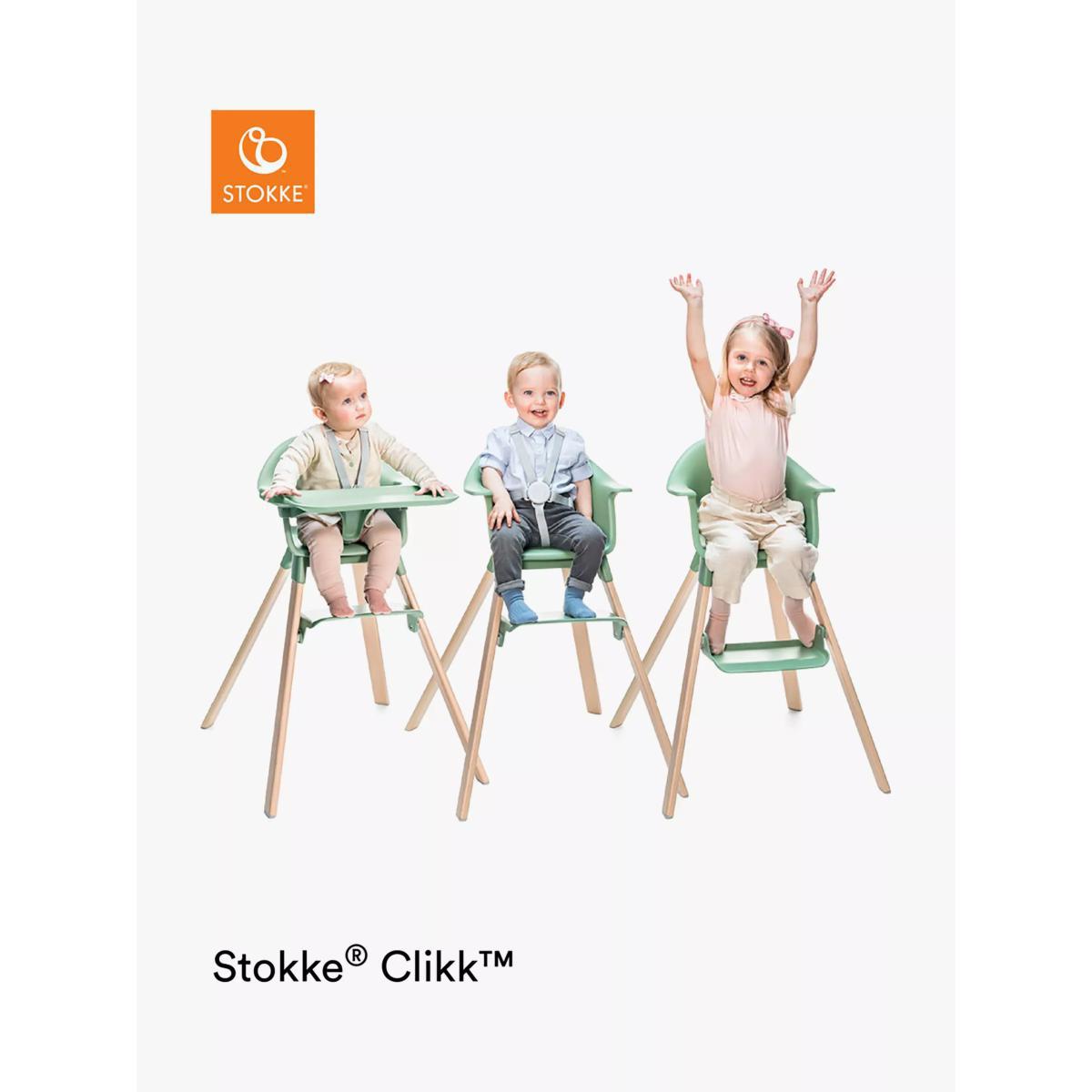 The Stokke® Clikk highchair has been developed to address all your needs for family mealtimes. Beautifully designed with smooth lines means you're ready for easier, cleaner and closer mealtimes in just "1-2-3 Clikk". Key features: All needed parts come included - high chair, tray & harness Tool-free assembly that’s quick and simple Lightweight and travel-friendly Easy to wipe clean with smooth surfaces from top to bottom Harness easy to remove for cleaning, machine washable Detachable and dishwasher safe tray Ergonomically designed for children from 6 months to 3 years Three con?gurations for optimal seating at each age Adjustable foot rest o?ers two positions The Stokke® Clikk™ highchair with tray and harness is intended for children able to sit up unaided and up to 3 years or a maximum weight of 15 kg/ 33lbs.